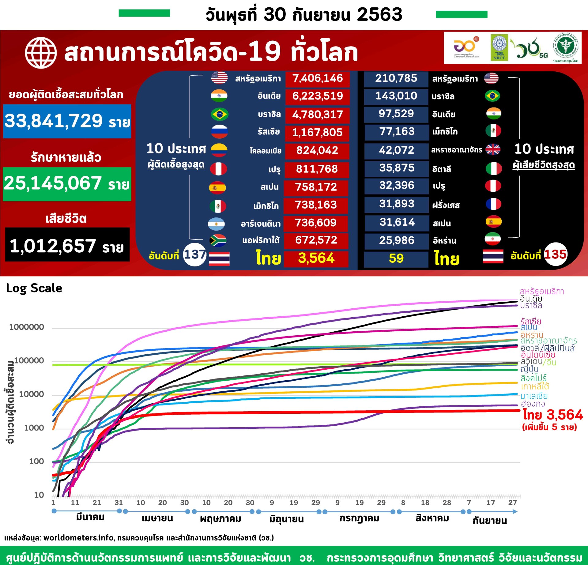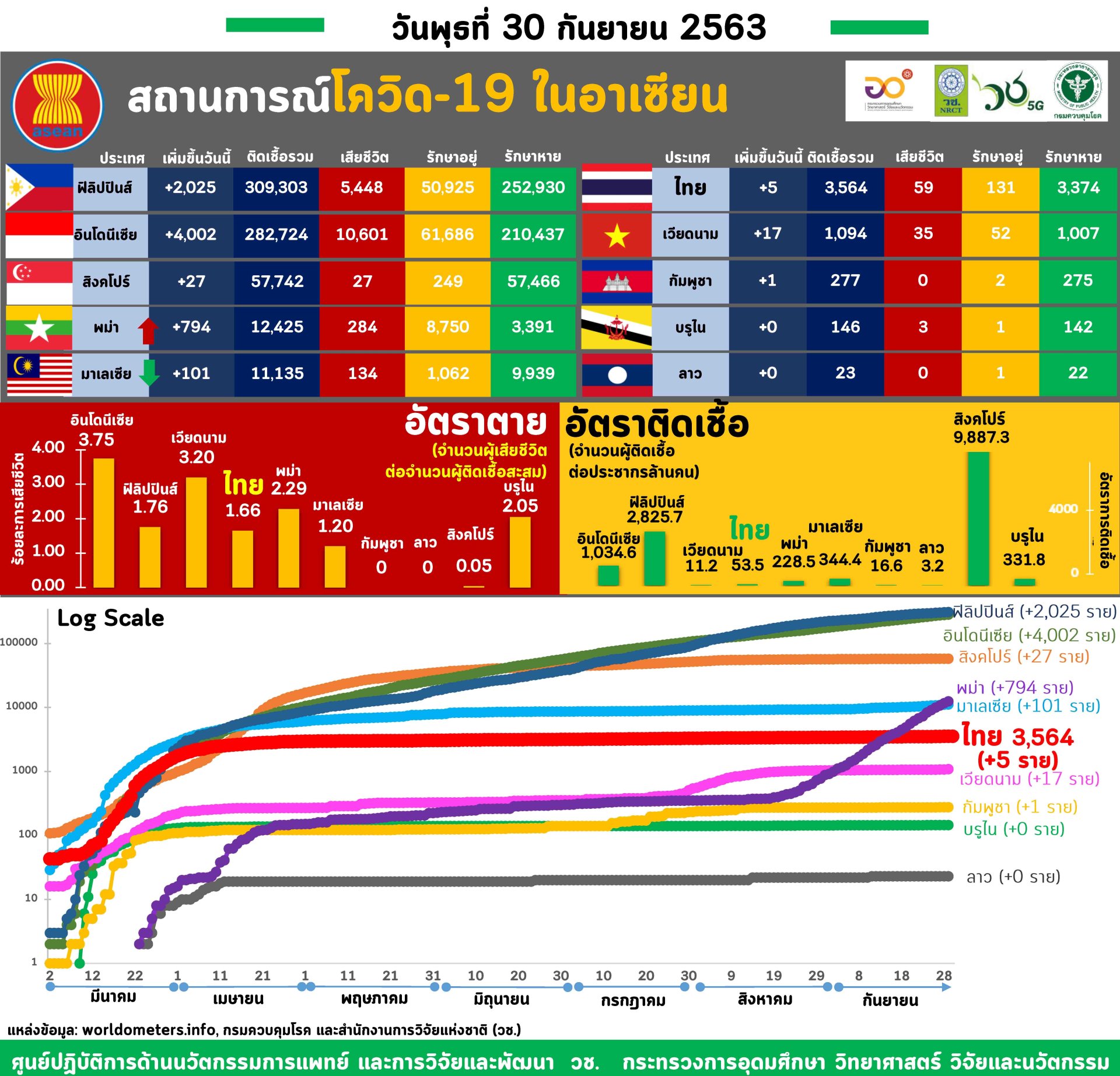 ผู้ติดเชื้อสะสม 3,564 ราย ใน 68 จังหวัด (เพิ่มขึ้น 5 ราย)