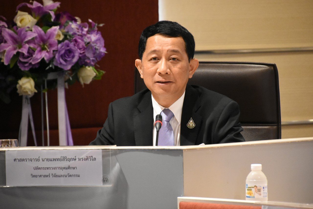 ศาสตราจารย์พิเศษ ดร.เอนก เหล่าธรรมทัศน์ รัฐมนตรีว่าการกระทรวงการอุดมศึกษา วิทยาศาสตร์ วิจัยและนวัตกรรม กล่าวเปิดที่มาของหลักสูตรว่า จากนโยบายของพลเอกประยุทธ์ จันทร์โอชา นายกรัฐมนตรี ที่ต้องการให้เกิดความร่วมมือและสร้างความเชื่อมโยงงานของสถาบันอุดมศึกษาและหน่วยงานด้านการวิจัย เพื่อขับเคลื่อนงานของกระทรวง อว.ให้มีประสิทธิภาพสูงสุด และสามารถทำงานร่วมกับภาคเอกชนได้ตามยุทธศาสตร์การนำวิทยาศาสตร์ การวิจัยและนวัตกรรมมาใช้ขับเคลื่อนประเทศ และสร้างขีดความสามารถในการแข่งขันในระดับโลก ตนจึงได้มีนโยบายให้ที่ประชุมอธิการบดีแห่งประเทศไทย (ทปอ.) จัดทำโครงการพัฒนาเครือข่ายและศักยภาพผู้บริหารระดับสูง ซึ่งครอบคลุมทั้งหน่วยงานของ อว. หน่วยงานภาครัฐอื่นๆ รวมถึงภาคธุรกิจหรือเอกชน เพื่อสนธิกำลังให้เกิดการทำงานร่วมกันอย่างมีพลัง และยังเป็นการเปิดโอกาสให้ได้สร้างความสัมพันธ์ ได้เรียนรู้งานซึ่งกันและกัน ถือเป็นการดึงศักยภาพของทุกหน่วยงานใน อว. ออกมารับใช้สังคมได้อย่างเต็มประสิทธิภาพ