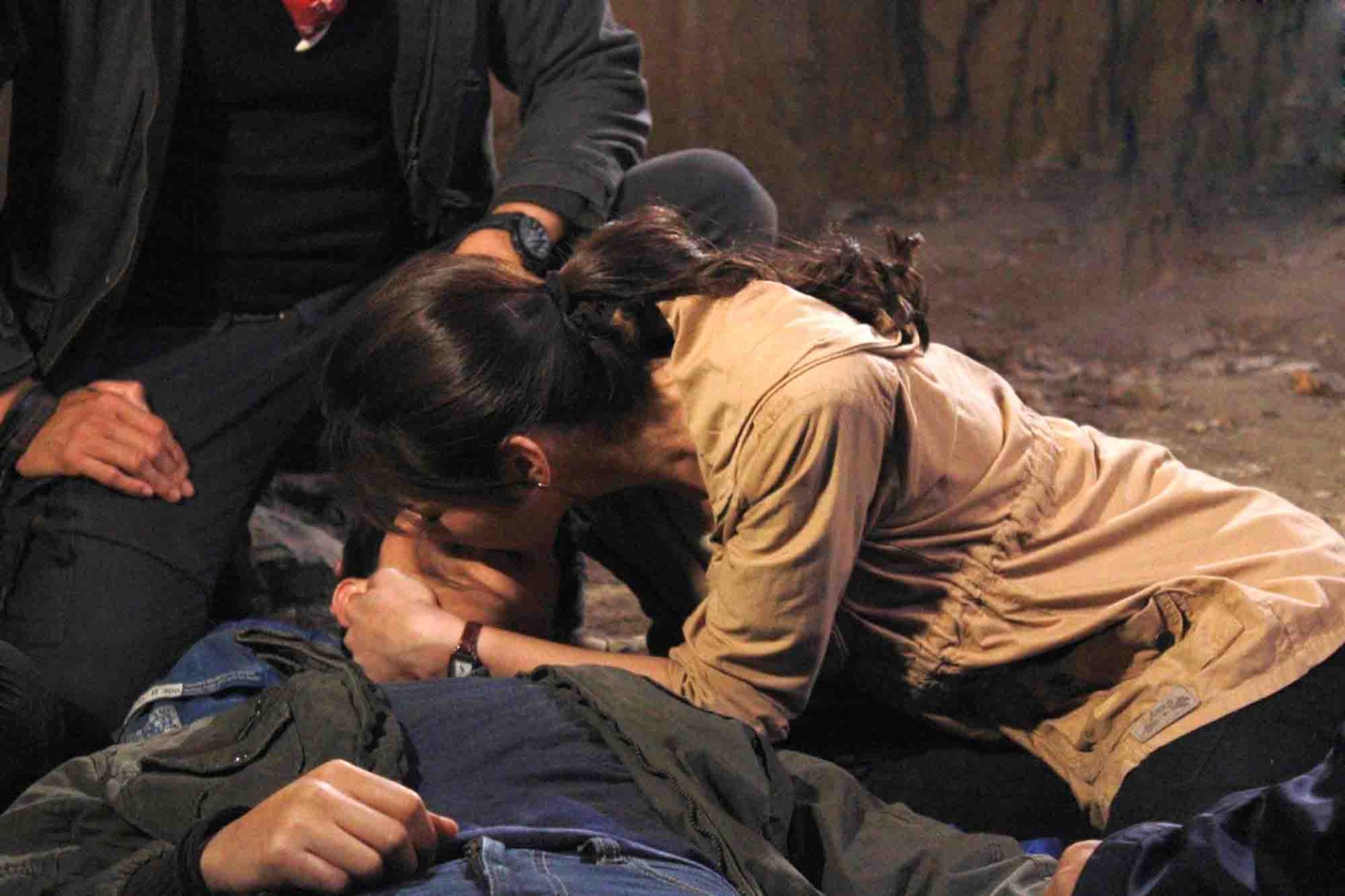 โดยฉากนี้เป็นเหตุการณ์ที่ "เมธี" (สันติรษฎร์ กุลนพเกียรติ) ถอดจิตไปตาม "พิมแพร" (พัชญา เพียรเสมอ) ในโลกแห่งวิญญาณ ซึ่งก่อนหน้านี้พิมแพรเเป็นลมหมดสติ และวิญญาณออกจากร่างไป ด้วยความเป็นห่วงว่าพิมแพรจะถูกวิญญาณร้ายเล่นงาน เมธีจึงตัดสินใจตามไปช่วย แต่มีเงื่อนไขว่าเมธีจะต้องกลับมาให้ทันก่อนที่เทียนไขจะดับลง ระหว่างนั้นพิมแพรได้ฟื้นขึ้นมาแต่เมธียังไม่ฟื้น พิมแพรตกใจและเป็นห่วงเมธีมาก "ต๋อง" (ณัฐพล ไรยวงค์) "กาน" (จาด้า อินโตร์เร) "พรานโรจน์" (คงณัฐ เชยสุวรรณ) และ "ยาโย" (อิงฟ้าเกตุคำ) ช่วยกันปลุกเมธีให้ตื่นแต่ไม่เป็นผล ทุกคนต่างเป็นกังวลและห่วงในความปลอดภัยของเมธี เนื่องจากเที่ยนไขละลายใกล้จะหมดเล่มแล้ว อีกทั้งชีพจรของธีก็เต้นช้าลง "ลุงรัง" (ดิเรก อมาตยกุล) นำทางทุกคนเข้ามาในถ้ำ พูดเตือนสติว่า "ความรักทำให้เกิดชีวิต" พิมแพรนึกขึ้นได้ว่าเรอเคยช่วยชีวิตเมรีไว้เมื่อครั้งที่เกิดเหตุการณ์ไฟไหม้ และครั้งนี้เธอจะช่วยชีวิตเขาอีก ทันใดนั้นพิมแพรก็ก้มลงแล้วจูบที่ริมฝีปากของเมธรีเรียกให้เมรีตื่น เมธีธีค่อยๆ ตื่นและลืมตาขึ้นมา ต๋องบอกกับเมธีว่าพิมแพรจูบเมธี เมธีเอ่ยขอบคุณพิมแพรที่ช่วยชีวิตเขา พิมแพรโผเข้ากอดทั้งน้ำตา