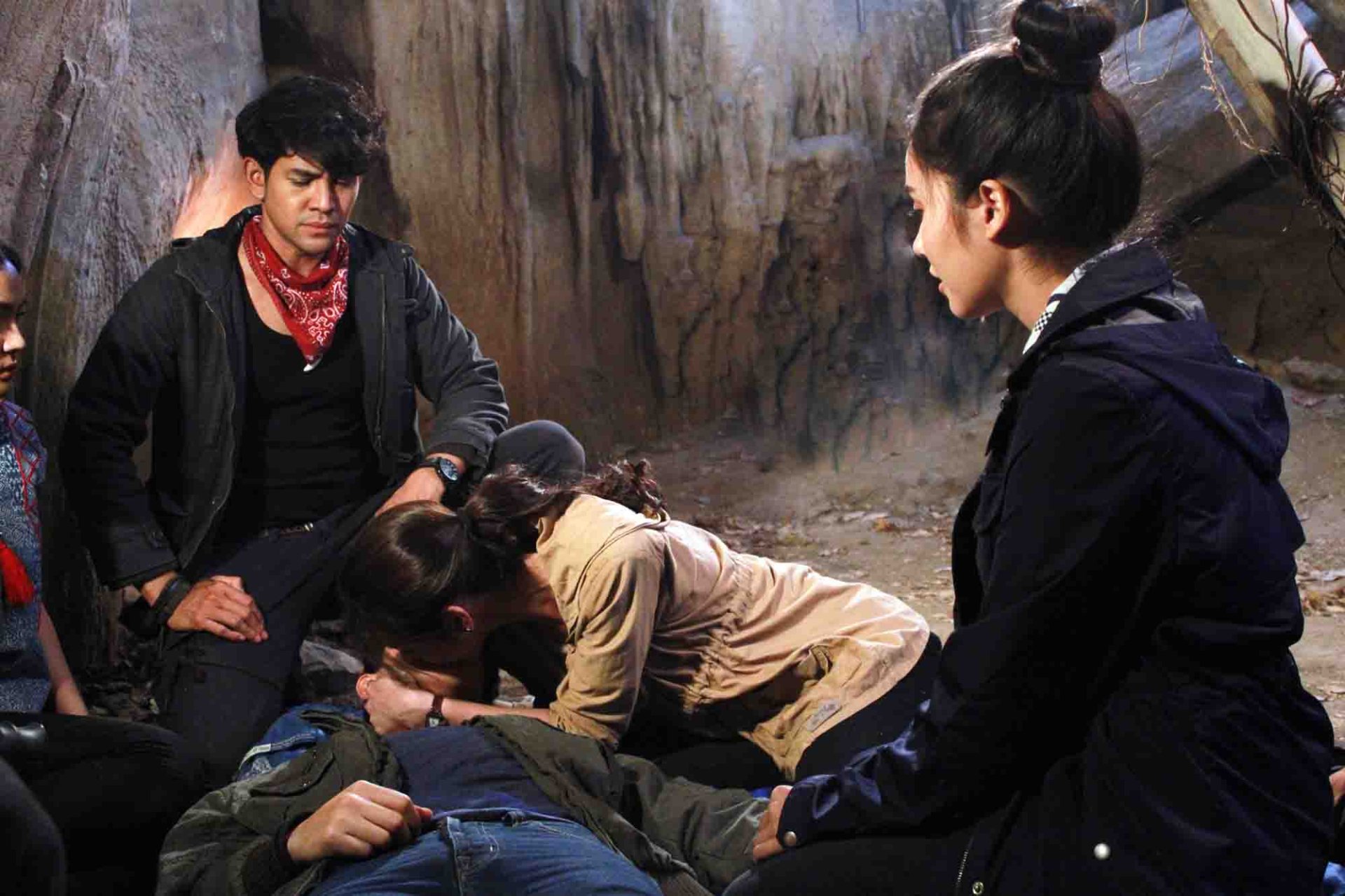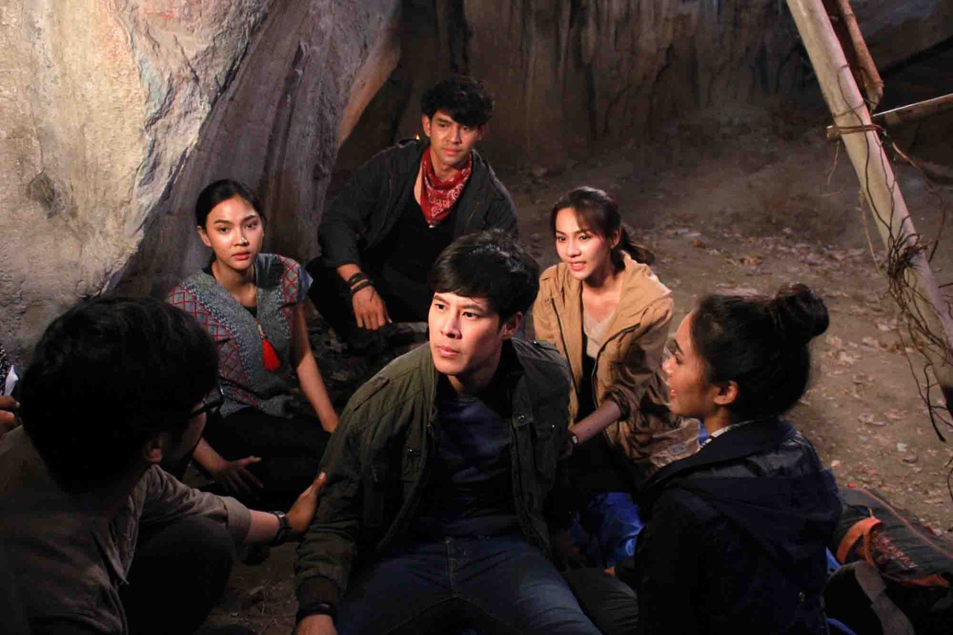 เบื้องหลังฉากนี้ยกกองไปถ่ายทำกันที่ วัดชับชะอม จังหวัดสระบุรี โดยป็นเหตุการณ์ที่เกิดขึ้นภายในถ้ำค้างคาวมีนักแสดงเข้าฉากมากมาย นำโดย เบน-พีพี บิว, จาด้า, บอส, อิงฟ้า และดิเรก ก่อนถ่ายทำผู้กำกับการแสดง โหน่ง (วีระชัย รุ่งเรือง) เรียกนักแสดงมาซักซ้อมคิวกันก่อน เพราะฉากนี้อยู่ระหว่างความป็นความตาย รีดเค้นอารมณ์สุดขีด ทั้งยังต้องมีการจูบปากประกบปากของจริงจึงทำให้สาวพีพีออกอการเขินอยู่ไม่น้อย