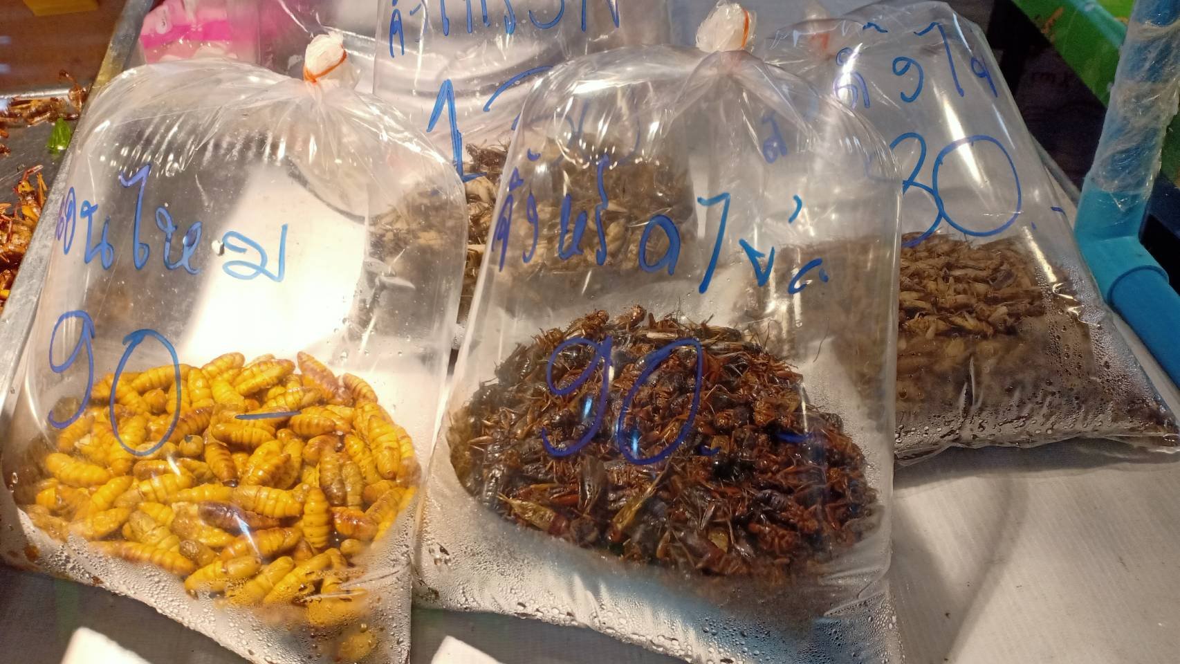 งานวิจัยโดย ดร.วรงค์ศิริ ไม่พบว่ามีความเสี่ยงจากยาฆ่าแมลงหรือสารเคมีที่มีผลต่อสุขภาพ ทว่าพบฮีสตามีนและเชื้อจุลินทรีย์ที่อาจส่งผลต่อสุขภาพของผู้บริโภค จึงมีคำแนะนำในการควบคุมการจัดจำหน่ายสดให้ถูกสุขลักษณะ และใช้ตู้แช่เย็นหรือห้องเย็นควบคุมอุณหภูมิไม่เกิน 4 องศาเซลเซียสตลอด เพื่อชะลอกิจกรรมของจุลินทรีย์ เอ็นไซม์ในแมลง และการสร้างสารฮีสตามีน และยืดอายุการจัดเก็บให้นานขึ้น