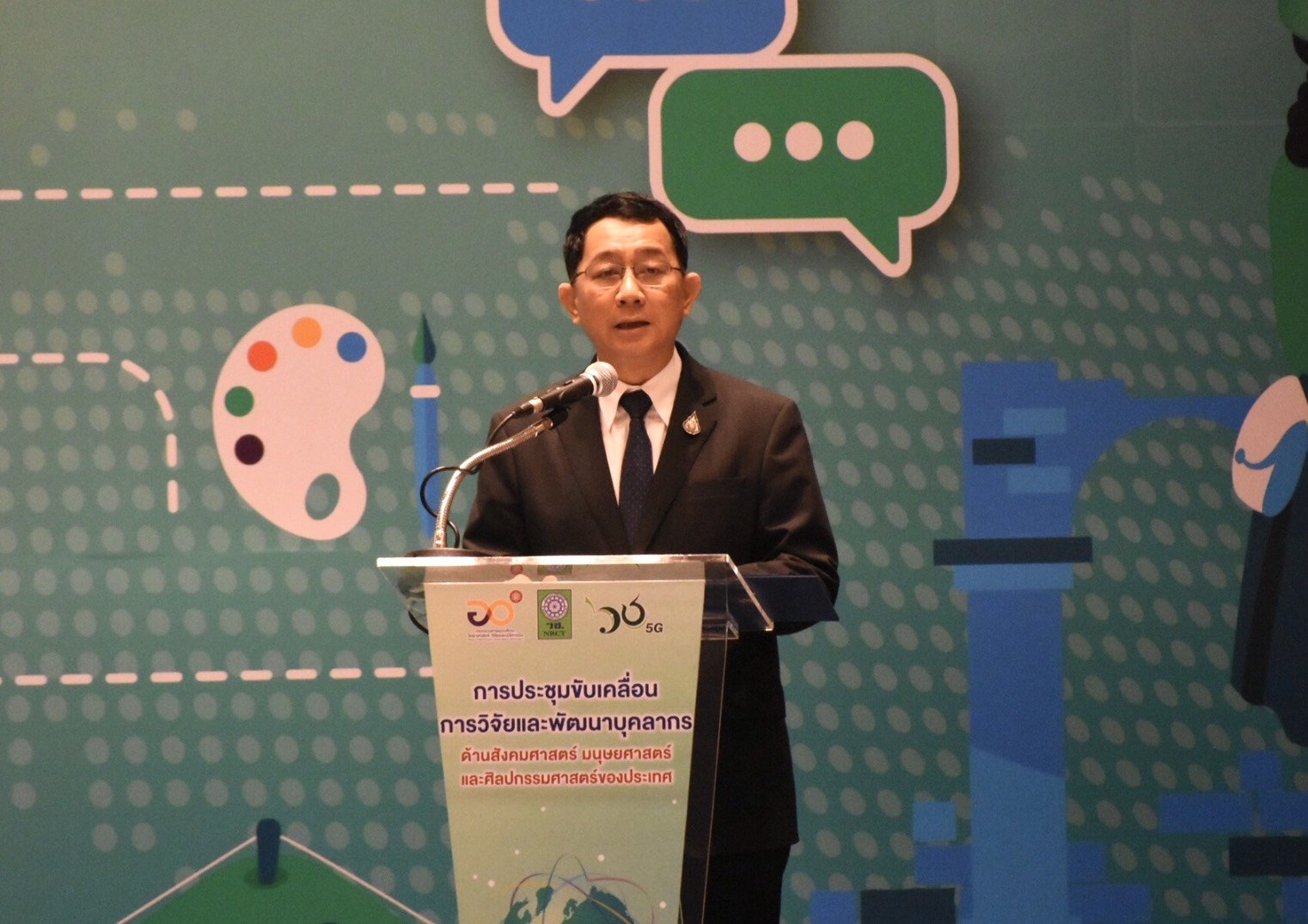 สำนักงานการวิจัยแห่งชาติ (วช.) จัดการประชุมขับเคลื่อนการวิจัยและพัฒนาบุคลากรด้านสังคมศาสตร์ มนุษย์ศาสตร์ และศิลปกรรมศาสตร์ของประเทศ เมื่อวันพุธที่ 18 พฤศจิกายน 2563 ณ ห้อง Infinity Ballroom ชั้น 1 โรงแรมพูลแมน คิงพาวเวอร์ กรุงเทพฯ โดย ศาสตราจารย์ นพ.สิริฤกษ์ ทรงศิวิไล ปลัดกระทรวงการอุดมศึกษา วิทยาศาสตร์ วิจัยและนวัตกรรม ได้กล่าวรายงาน และศาสตราจารย์พิเศษ ดร.เอนก เหล่าธรรมทัศน์ รัฐมนตรีว่าการกระทรวงการอุดมศึกษา วิทยาศาสตร์ วิจัยและนวัตกรรม (อว.) ได้กล่าวบรรยายพิเศษเรื่อง “นโยบายขับเคลื่อนการส่งเสริมวิชาการ การวิจัย และพัฒนาบุคลากรด้านสังคมศาสตร์ มนุษยศาสตร์และศิลปกรรมศาสตร์ครั้งสำคัญของประเทศ”