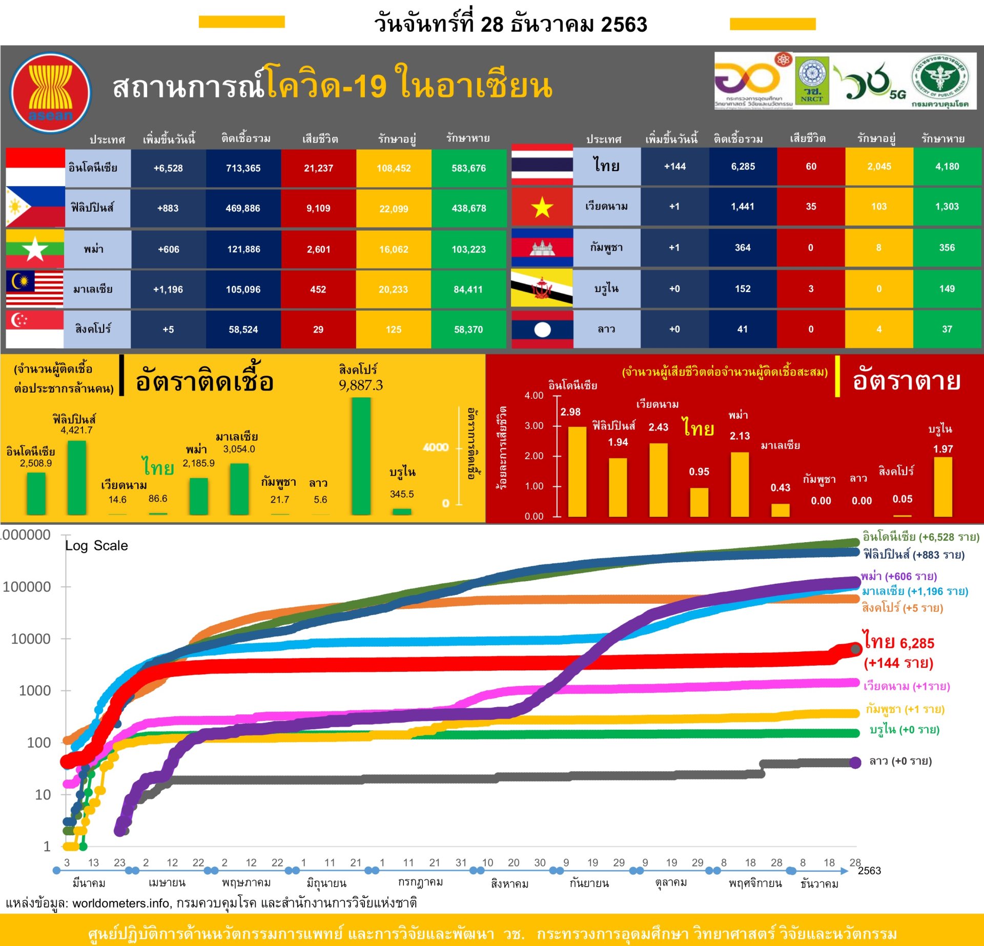 ผู้ติดเชื้อสะสม 6,285 ราย(เพิ่มขึ้น 144 ราย)