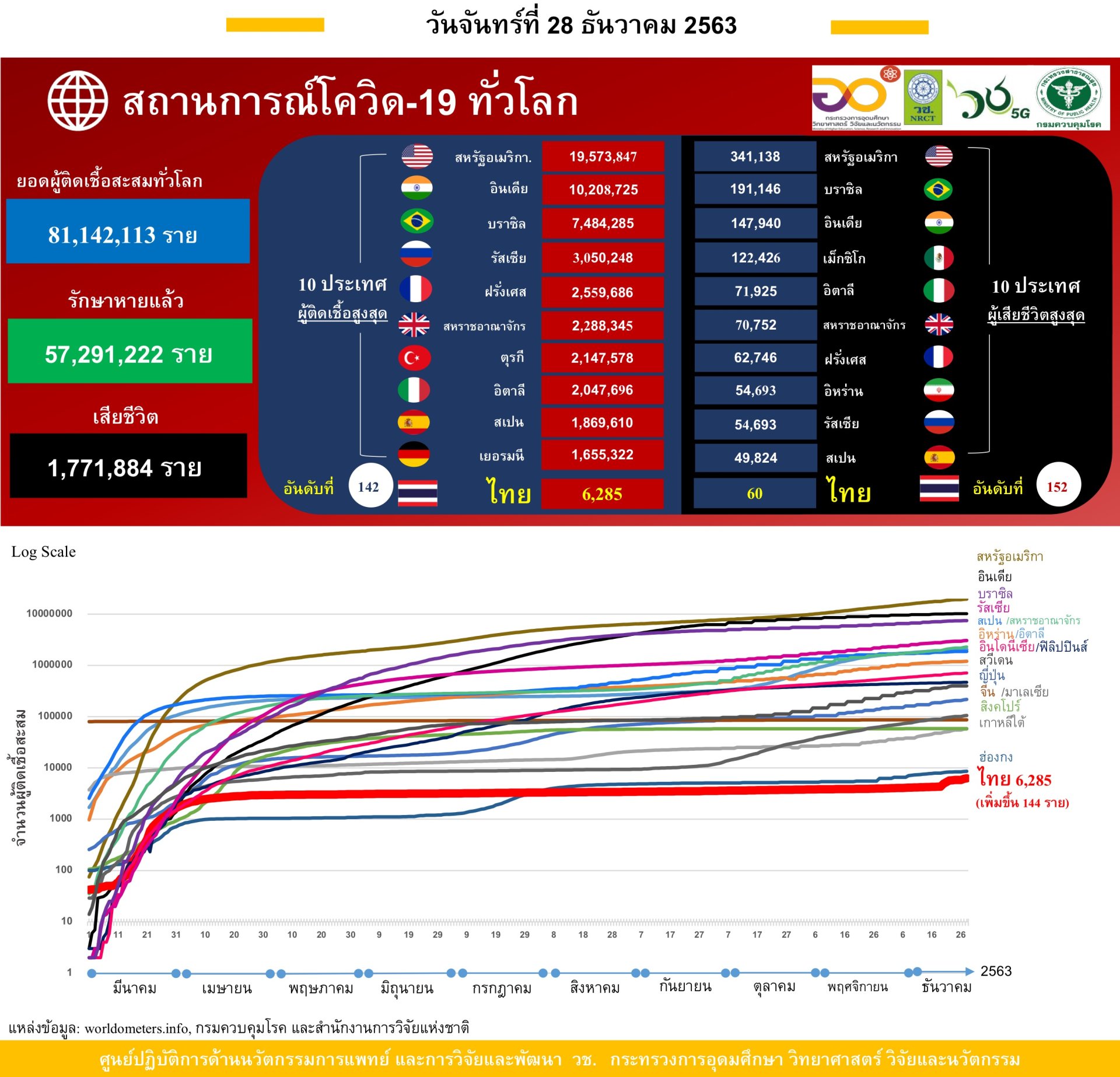 - ยอดผู้ติดเชื้อสะสมทั่วโลกอยู่ที่ 81 ล้านราย "โดยมีจำนวนผู้เสียชีวิตสะสมมากกว่า 1.77 ล้านราย