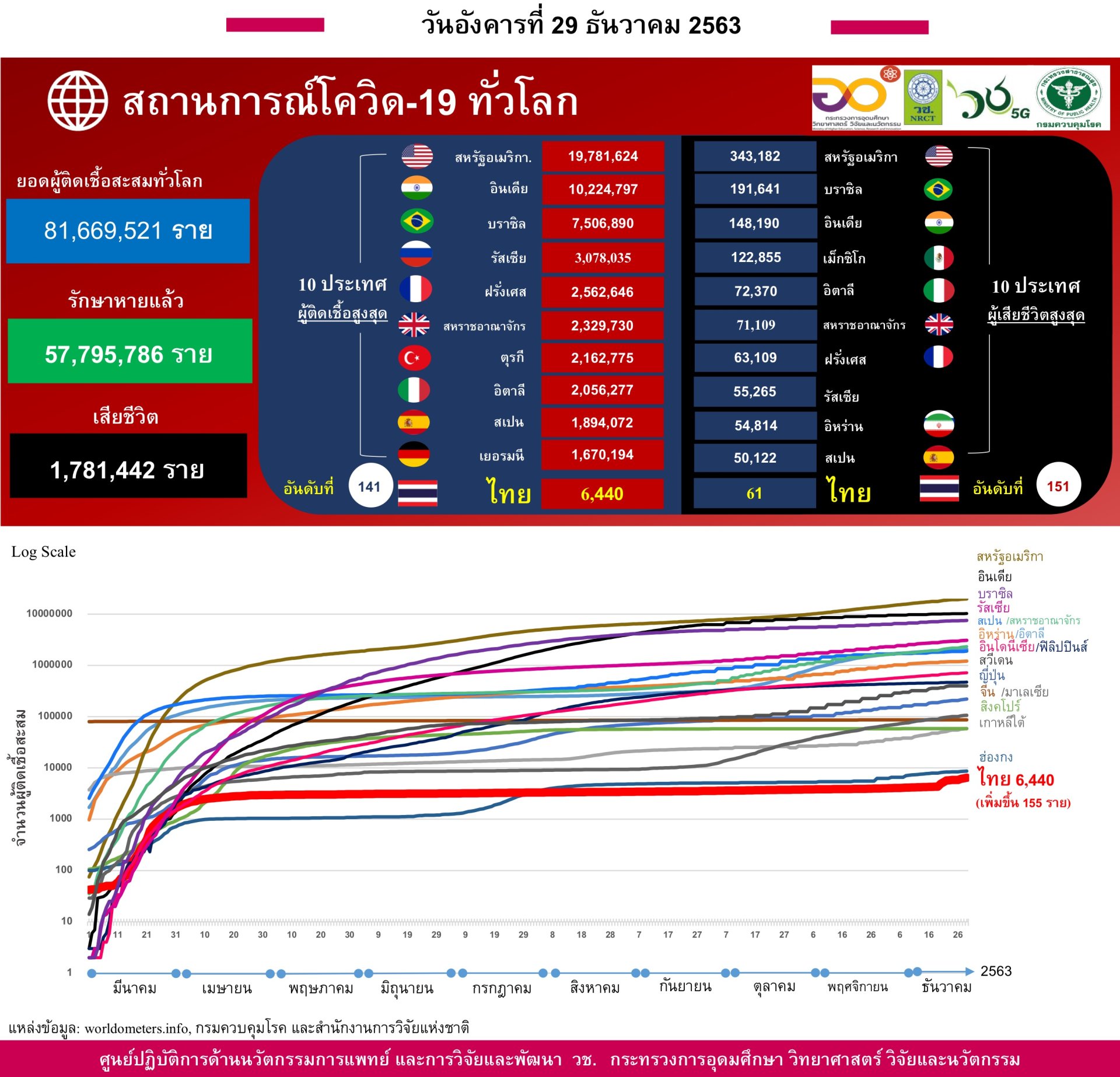 - ยอดผู้ติดเชื้อสะสมทั่วโลกอยู่ที่ 81 ล้านราย "โดยมีจำนวนผู้เสียชีวิตสะสมมากกว่า 1.78 ล้านราย