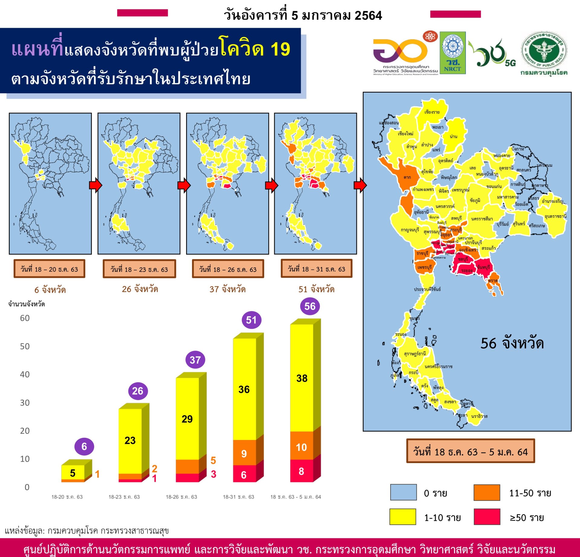 18 ธค.63-5 มค.64 มีจำนวน 56 จังหวัด