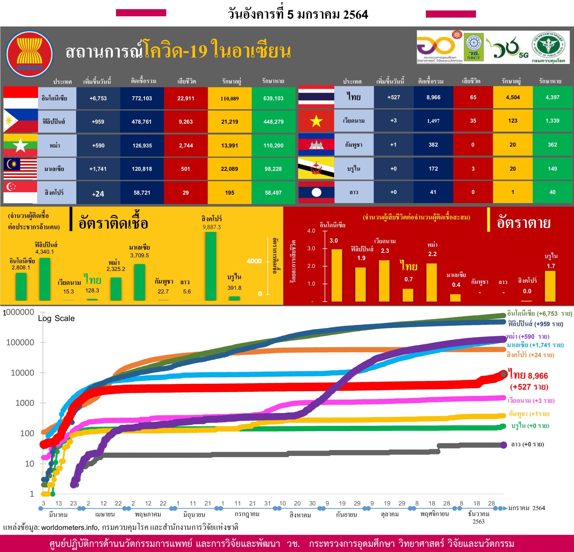 ผู้ติดเชื้อสะสม 8,966 ราย(เพิ่มขึ้น 527 ราย)