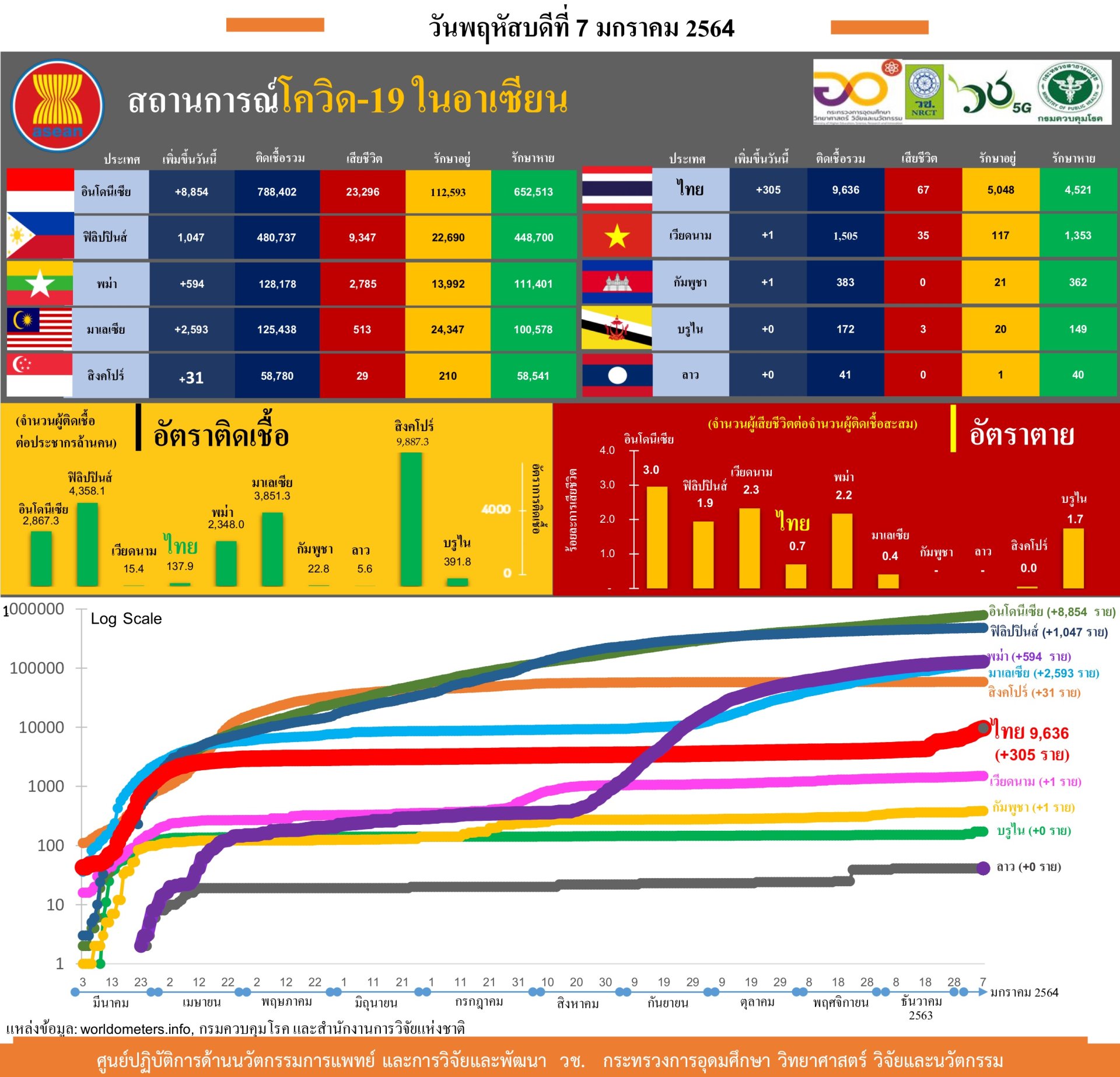- ไทยมียอดผู้ติดเชื้อสะสมอยู่ที่อันดับ 130 และยอดผู้เสียชีวิตอยู่ที่อันดับ 149 ของโลก