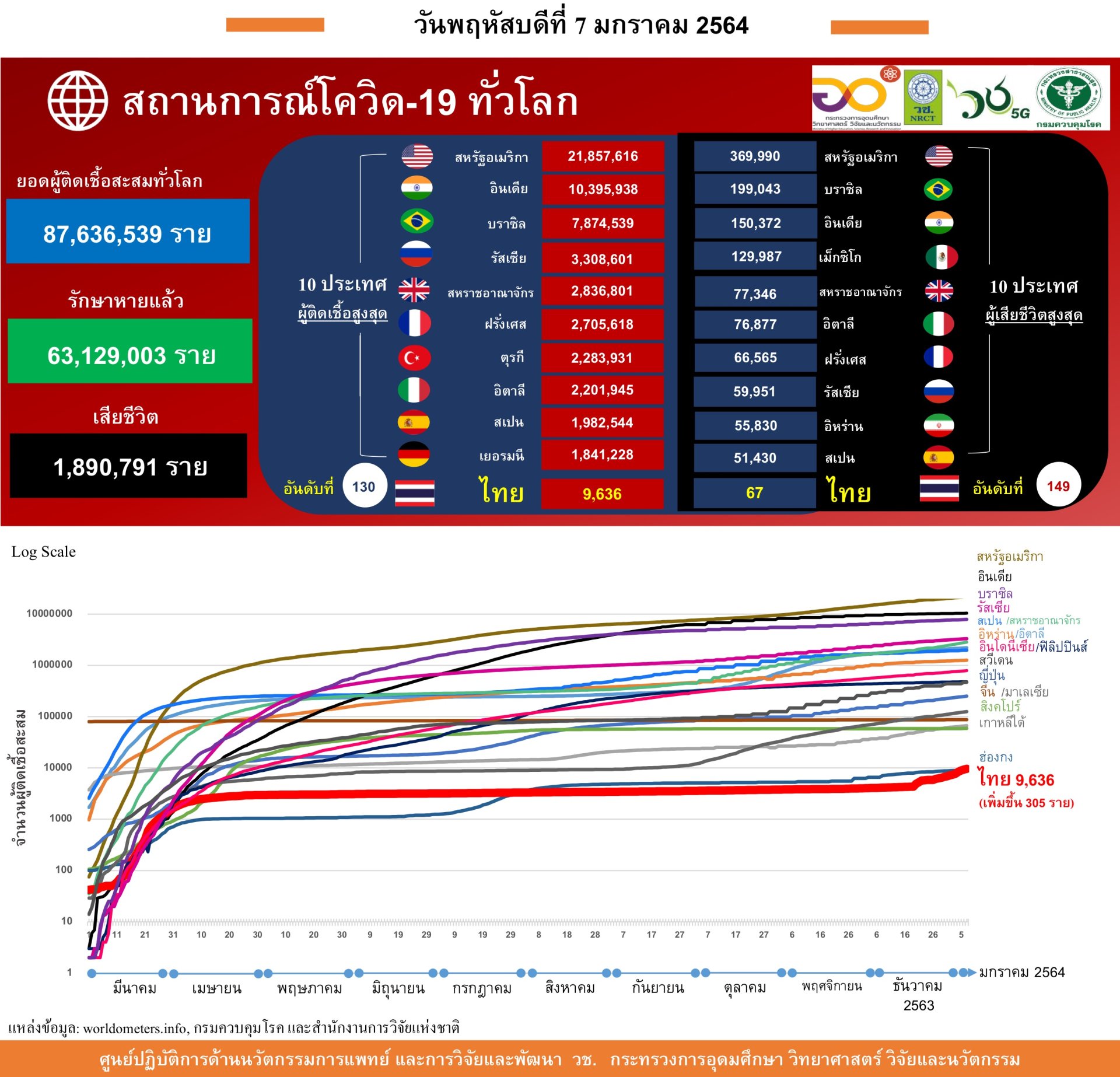- ยอดผู้ติดเชื้อสะสมทั่วโลก87.6 ล้านราย มีจำนวนผู้เสียชีวิตสะสมกว่า 1.89ล้านราย