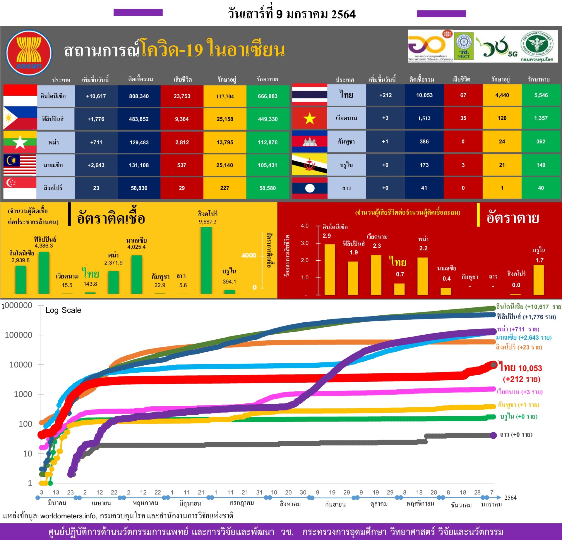 - ไทยมียอดผู้ติดเชื้อสะสมอยู่ที่อันดับ 129 และยอดผู้เสียชีวิตอยู่ที่อันดับ 150 ของโลก