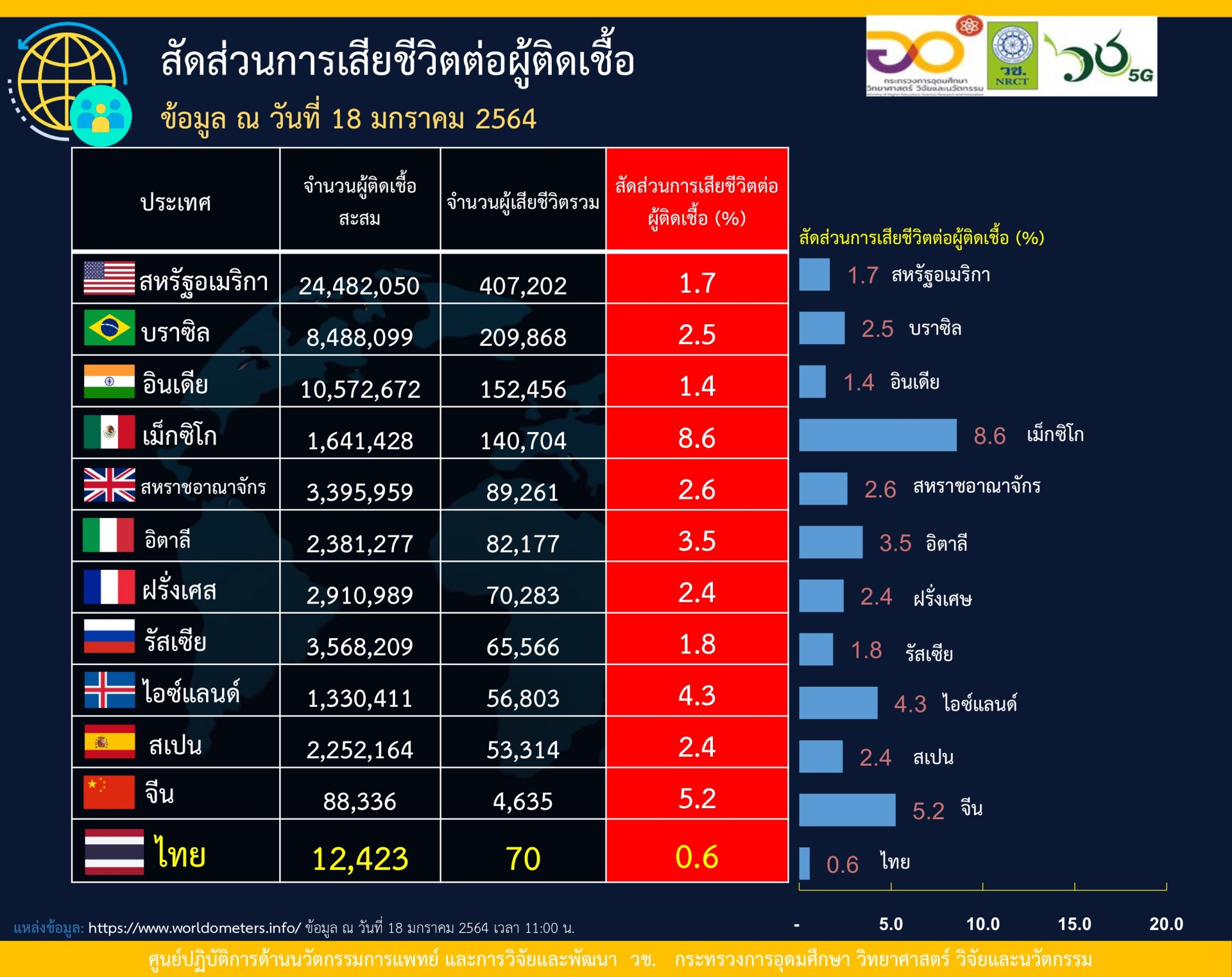 (small yellow diamond)อัตราการเสียชีวิตต่อผู้ติดเชื้อ