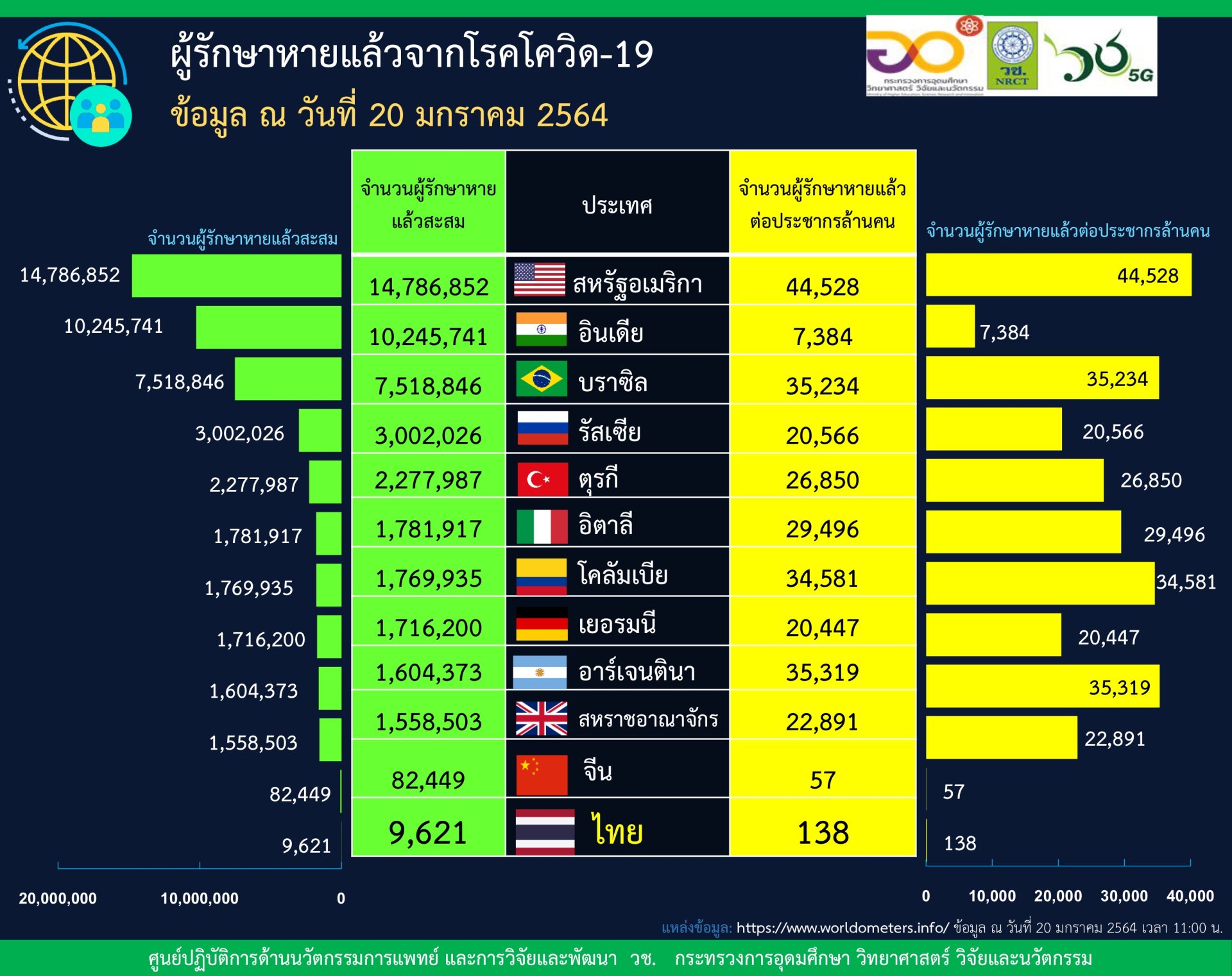 วันนี้มีผู้ติดเชื้อสะสมทั่วโลกกว่า 96.6 ล้านคน และมีผู้เสียชีวิตรวมแล้วกว่า 2 ล้านราย
