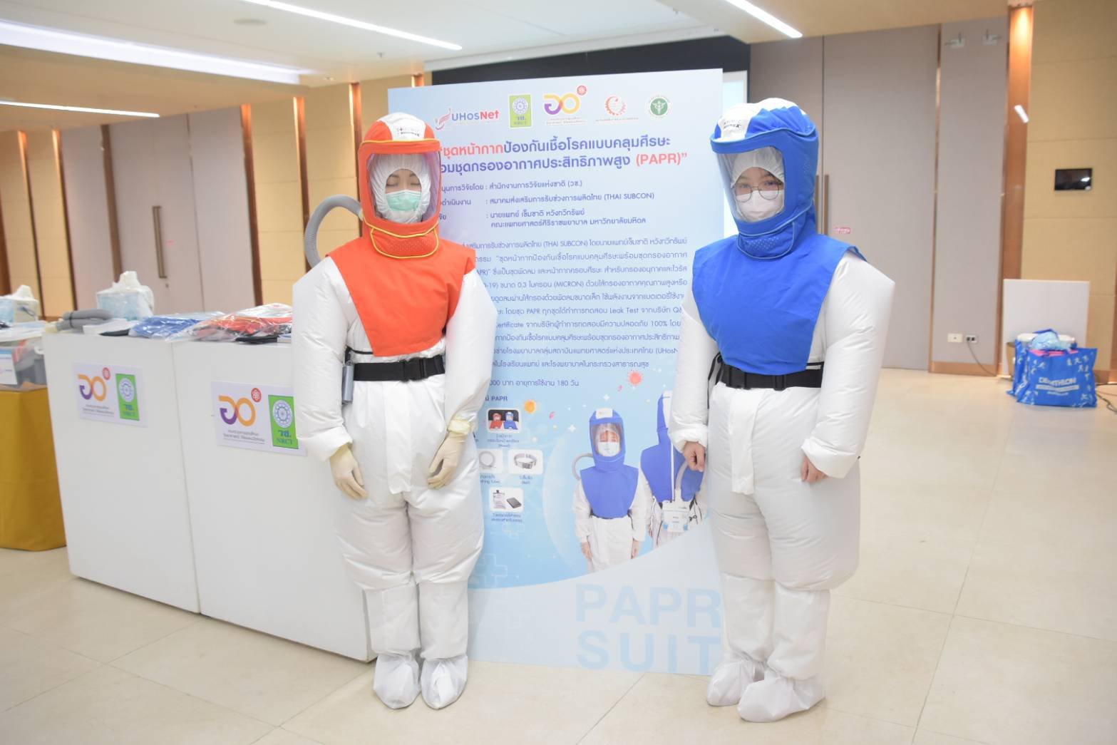 สำหรับนวัตกรรมชุดหน้ากากป้องกันเชื้อโรคแบบคลุมศีรษะพร้อมชุดกรองอากาศประสิทธิภาพสูง หรือนวัตกรรมชุด PAPR นั้น เป็นผลงานจากสมาคมส่งเสริมการรับช่วงการผลิตไทยที่ได้รับทุนสนับสนุนจากสำนักงานการวิจัยแห่งชาติ (วช.) โดยเป็นนวัตกรรมชุดพัดลมและหน้ากากครอบศีรษะ ซึ่งหน้ากากครอบศีรษะ