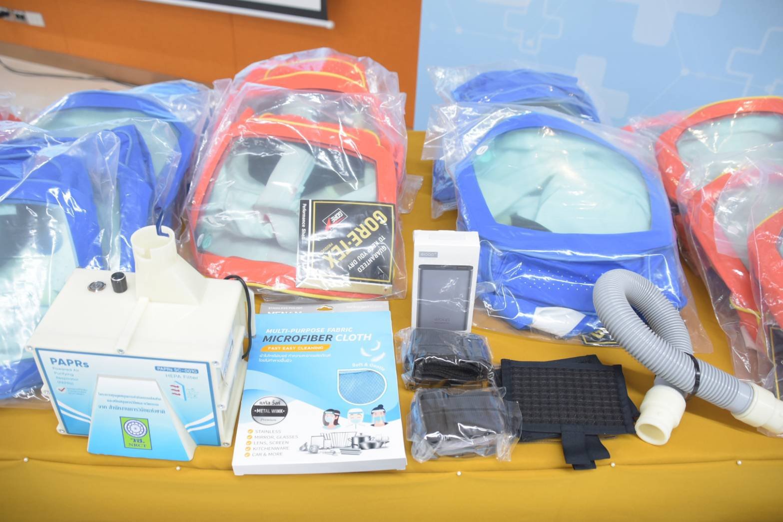 ชุดหน้ากากป้องกันเชื้อโรคแบบคลุมศีรษะพร้อมชุดกรองอากาศประสิทธิภาพสูง ได้ส่งมอบชุดหน้ากากป้องกันเชื้อโรคแบบคลุมศีรษะพร้อมชุดกรองอากาศประสิทธิภาพสูง (PAPR) เพื่อรับมือกับสถานการณ์ COVID – 19 ให้แก่ รศ.นพ.สุรศักดิ์ ลีลาอุดมลิปิ ประธานเครือข่ายโรงพยาบาลกลุ่มสถาบันแพทยศาสตร์แห่งประเทศไทย (UHosNet) และ นพ.รุ่งเรือง กิจผาติ ที่ปรึกษาระดับกระทรวงสาธารณสุข นายแพทย์ผู้ทรงคุณวุฒิ