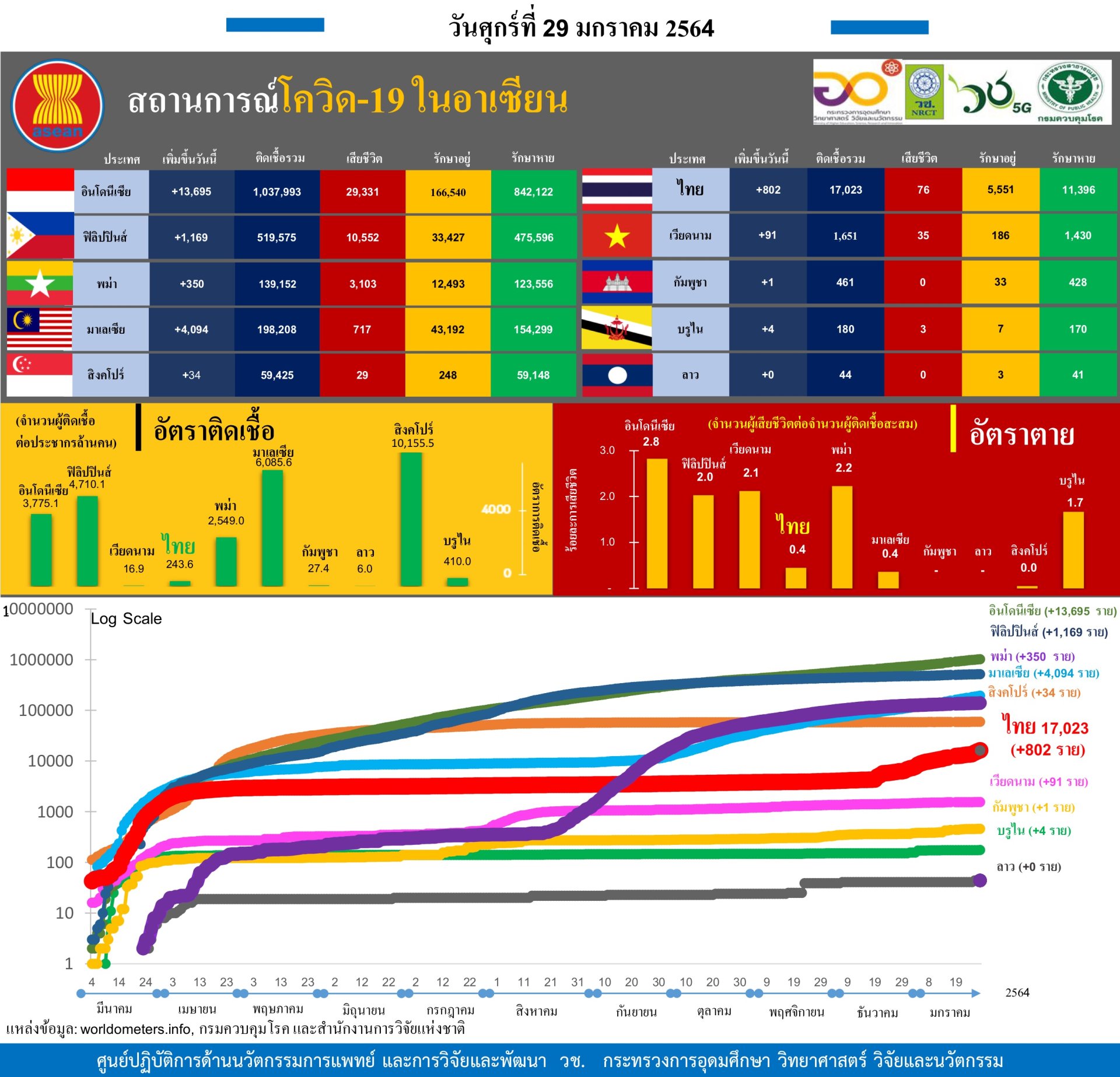- ไทยมียอดผู้ติดเชื้อสะสมอยู่ที่อันดับ 119 และยอดผู้เสียชีวิตอยู่ที่อันดับ 150 ของโลก