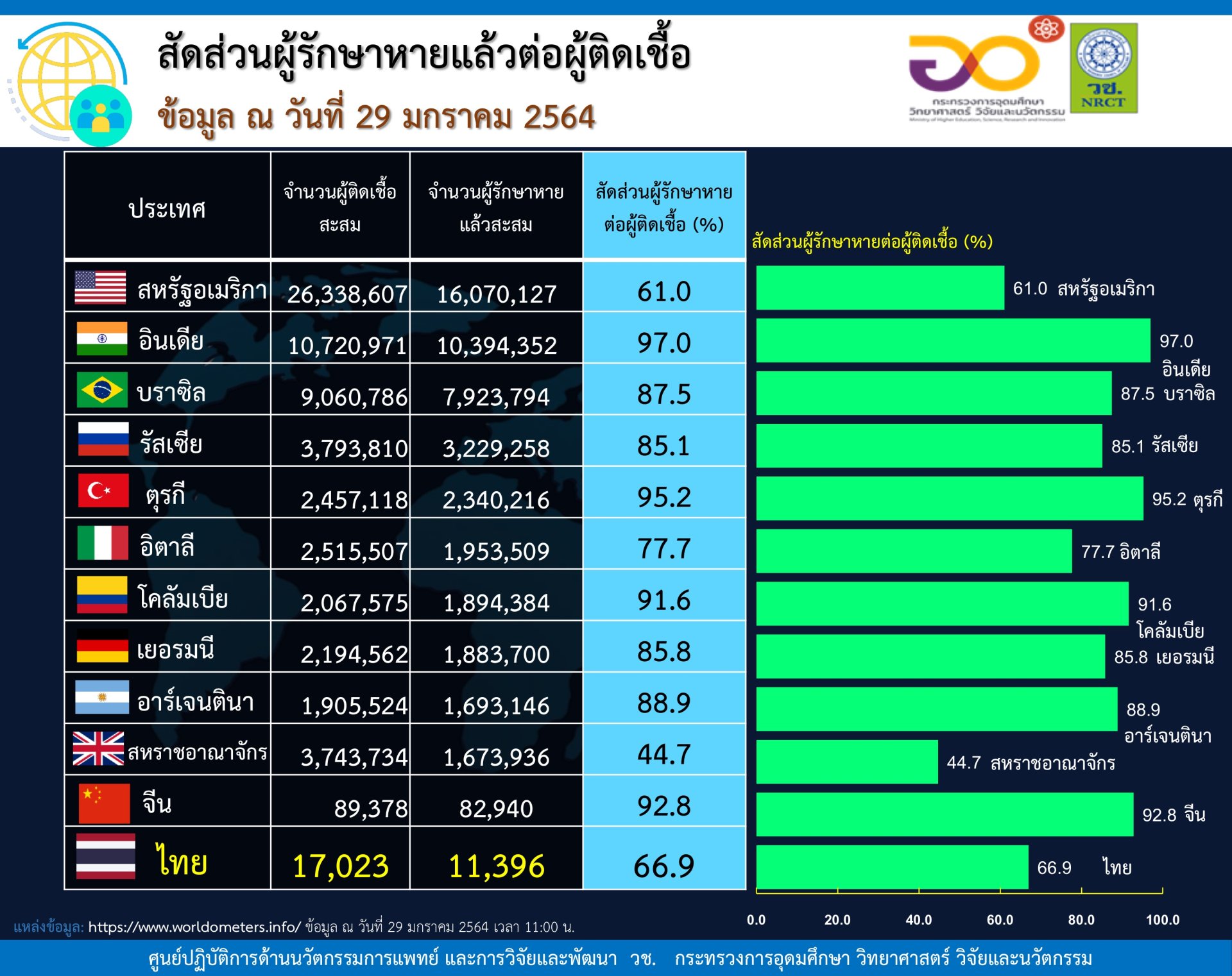 อัตราผู้รักษาหายแล้วต่อผู้ติดเชื้อ