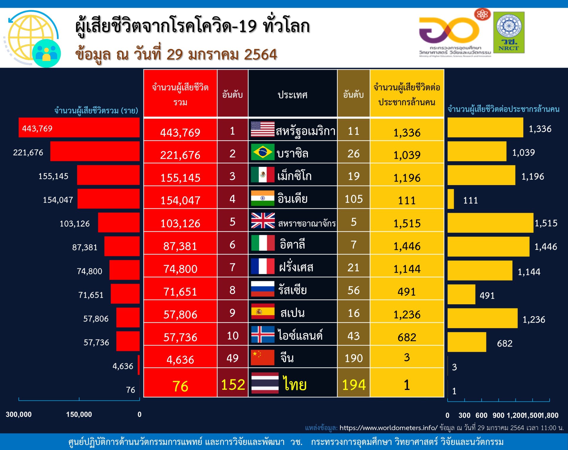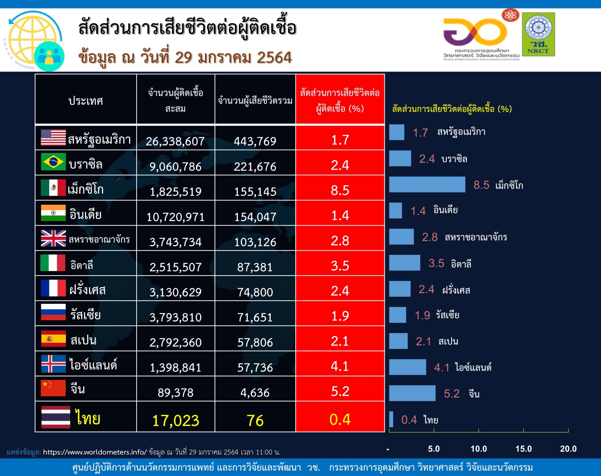 จำนวนผู้เสียชีวิตรวมต่อประชากร อัตราการเสียชีวิตต่อผู้ติดเชื้อ