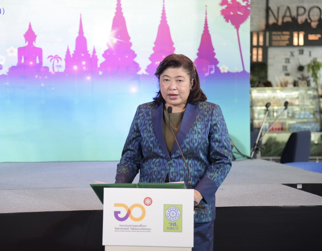 ดร.วิภารัตน์ ดีอ่อง รักษาราชการแทนผู้อำนวยการสำนักงานการวิจัยแห่งชาติ กล่าวว่า วช. ภายใต้สังกัดกระทรวง อว. ซึ่งมีภารกิจในการบริหารทุนวิจัยและนวัตกรรม ครอบคลุมการวิจัยพื้นฐาน วิจัยประยุกต์ ทั้งวิทยาศาสตร์ สังคมศาสตร์และมนุษยศาสตร์ รวมทั้งสหสาขาวิชาการ ได้เล็งเห็นคุณค่าทางวัฒนธรรมท้องถิ่น ซึ่งเป็นมรดกทางภาษาและวัฒนธรรมไทยที่มีคุณค่า และมีความสำคัญต่อคนไทย มีความเกี่ยวข้องกับวิถีชีวิตของคนไทยในทุกท้องถิ่น จึงได้สนับสนุนทุนอุดหนุนกิจกรรมส่งเสริมและสนับสนุนการวิจัยแก่มูลนิธิอาจารย์สุกรี เจริญสุข เพื่อขยายผลต่อยอดนวัตกรรมเพลงพื้นบ้าน โดยนำบทเพลงดั้งเดิมที่เรียบเรียงเสียงประสานใหม่มาบรรเลงโดยวงไทยซิมโฟนีออร์เคสตราร่วมกับกลุ่มนักดนตรีท้องถิ่น ซึ่งจะนำไปใช้เป็นเพลงต้นแบบสู่สากล และเป็นการอนุรักษ์ ฟื้นฟู สืบสานศิลปวัฒนธรรมท้องถิ่นและภูมิปัญญาเพลงพื้นบ้าน