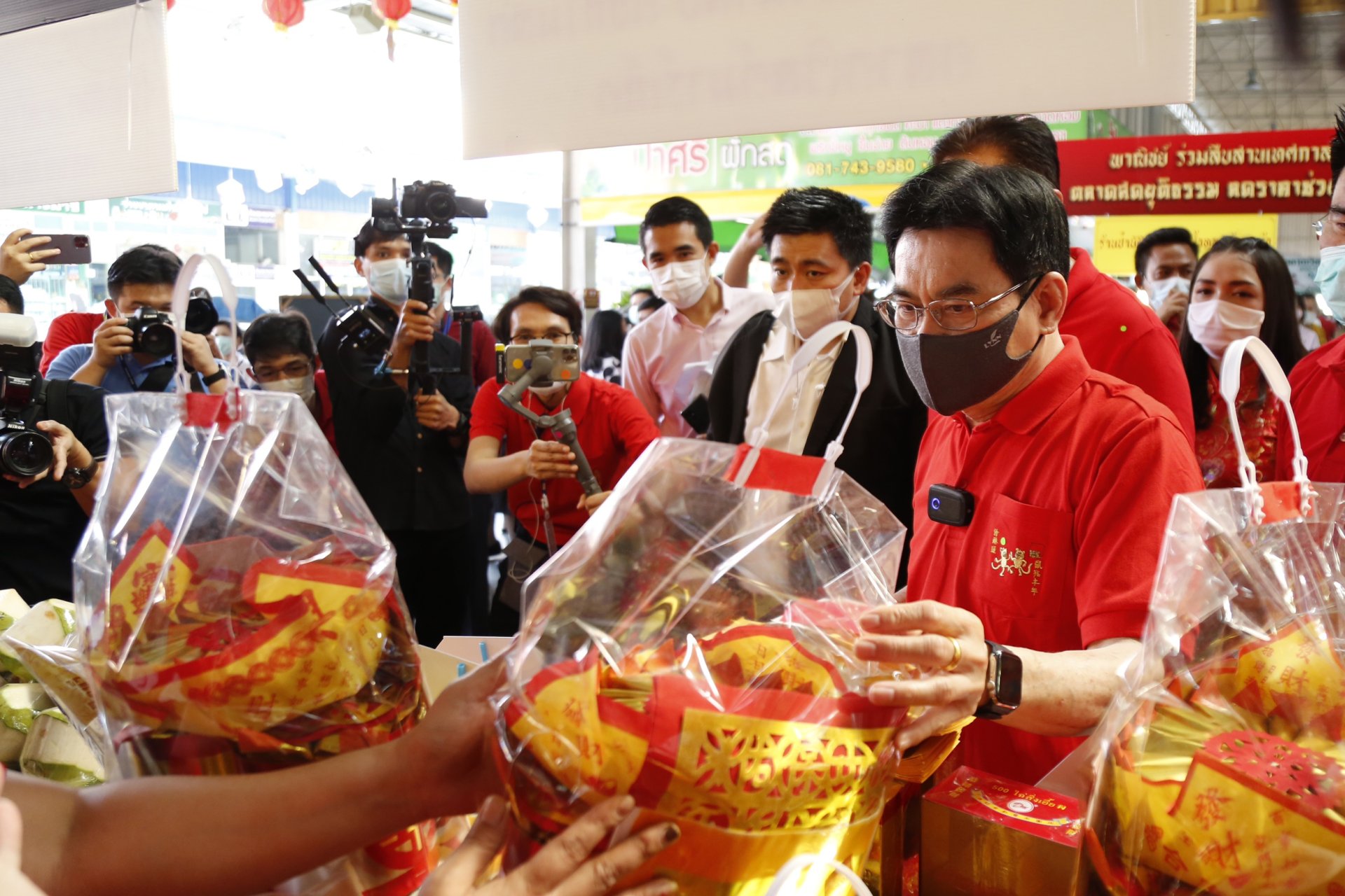 ผู้ประกอบการ ตรวจราคาสินค้าเพื่อดูแลผู้บริโภคช่วงเทศกาล ตรุษจีนโครงการ “พาณิชย์ลดราคา! ช่วยประชาชน" ณ ตลาดเวิลด์มาร์เก็ต เขตทวีวัฒนา กทม. โดยบรรยากาศวันนี้ ตรวจราคาสินค้า หมู ไข่ ไก่ ส้ม ของไหว้ และน้ำมันปาล์ม จากนั้นได้นำปล่อยขบวนคาราวานไข่ราคาถูก-น้ำมันปาล์มลดราคา! ร่วมกับผู้บริหาร ปตท.-บางจาก-พีที และมอบนโยบายพาณิชย์จังหวัดด้วยการกำชับตรวจราคาสินค้าและการติดป้ายราคาเพื่อความเป็นธรรมต่อประชาชนทุกจังหวัด