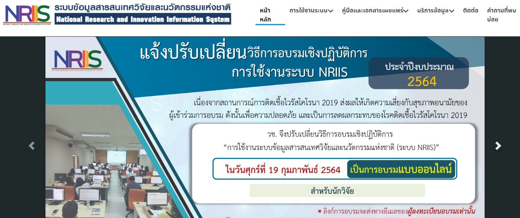 7) ข้อมูลสารสนเทศด้านวิทยาศาสตร์ วิจัยและนวัตกรรมของประเทศ ซึ่ง วช. พัฒนาระบบข้อมูลสารสนเทศกลาง ด้านวิทยาศาสตร์ วิจัยและนวัตกรรม ระบบเชื่อมโยงข้อมูล วิทยาศาสตร์ วิจัย และนวัตกรรมจากหน่วยงานต่าง ๆ ทั้งในประเทศและต่างประเทศ โดยได้พัฒนา “ระบบข้อมูลสารสนเทศวิจัยและนวัตกรรมแห่งชาติ (National Research and Innovation Information System : NRIIS)” เพื่อบริหารภาพรวมของการวิจัยและ โครงการวิจัย นักวิจัย แผนงานวิจัย และโครงสร้างพื้นฐานของระบบวิจัย เพื่อเป็นระบบกลางของประเทศ