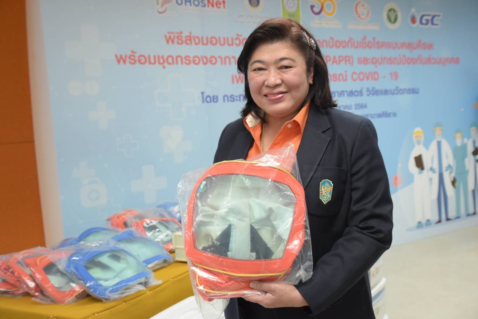 3) การมอบผลงานสนับสนุนการวิจัย และนวัตกรรมด้านเวชภัณฑ์ อุปกรณ์ทางการแพทย์ป้องกันโรคโควิด-19 เพื่อแก้ไขปัญหาและลดผลกระทบจากการขาดแคลนอุปกรณ์