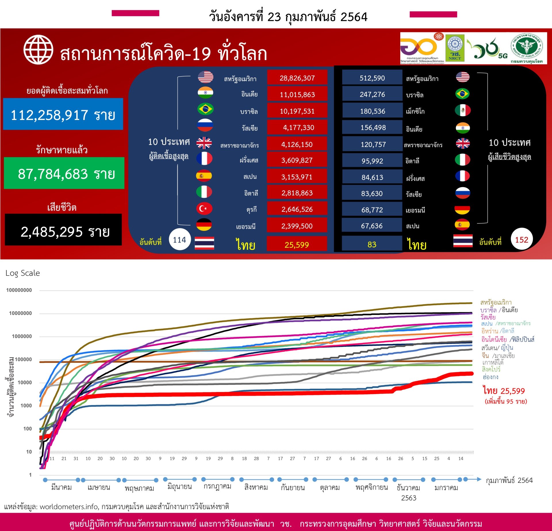 - ยอดผู้ติดเชื้อสะสมทั่วโลก 112 ล้านราย มีจำนวนผู้เสียชีวิตสะสมกว่า 2.4 ล้านราย