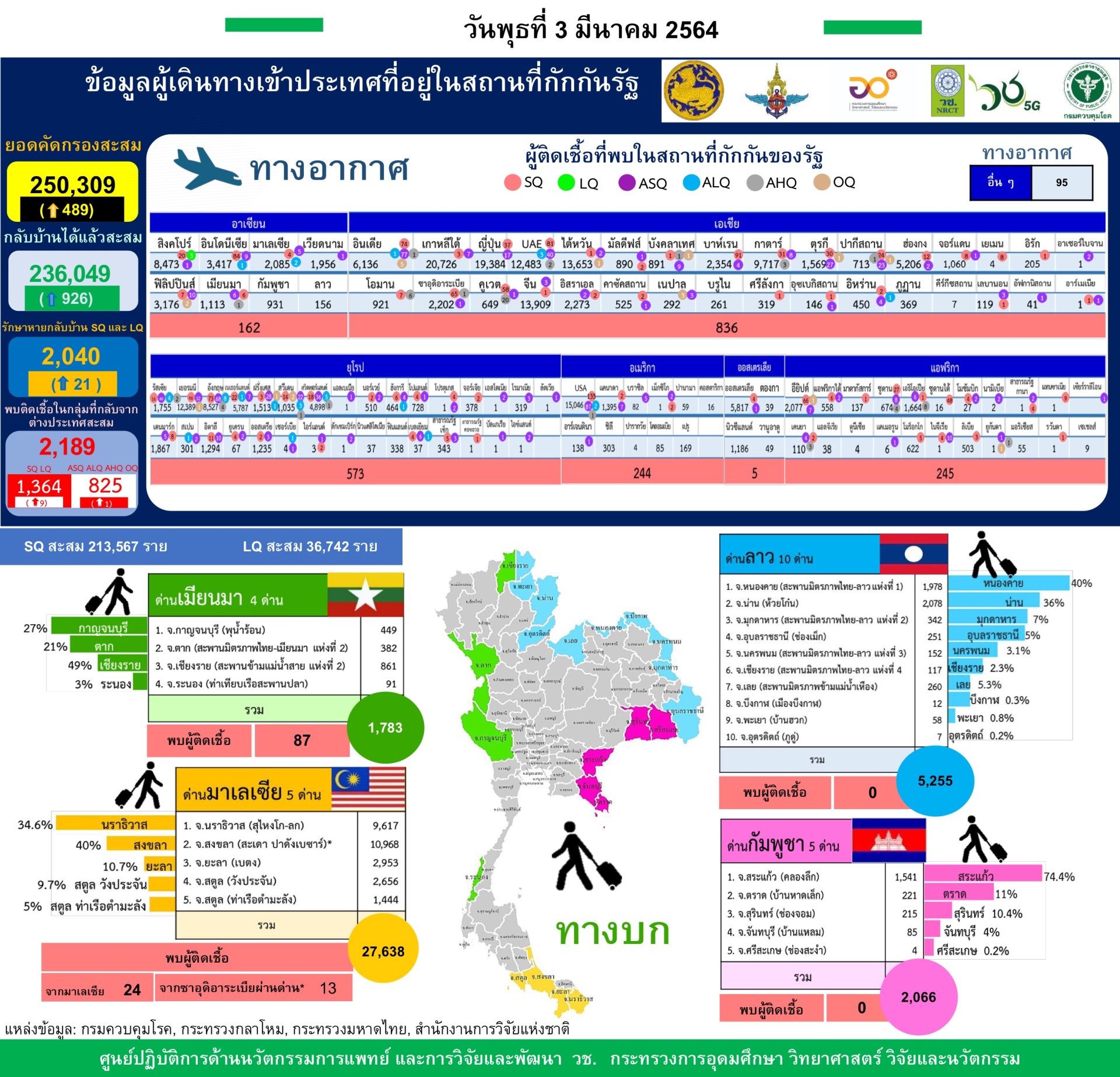 - ไทยมียอดผู้ติดเชื้อสะสมอยู่ที่อันดับ 114 และยอดผู้เสียชีวิตอยู่ที่อันดับ 155 ของโลก