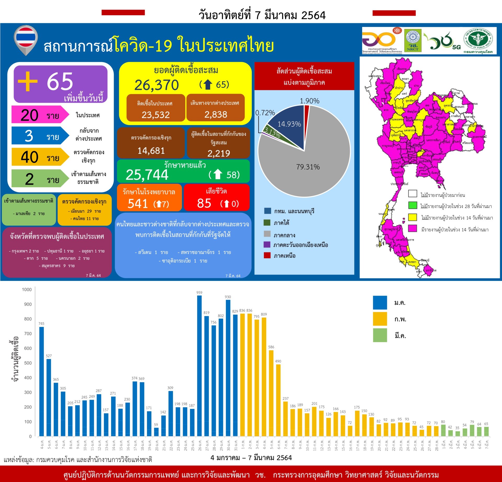 - ไทยมียอดผู้ติดเชื้อสะสมอยู่ที่อันดับ 115 และยอดผู้เสียชีวิตอยู่ที่อันดับ 154 ของโลก