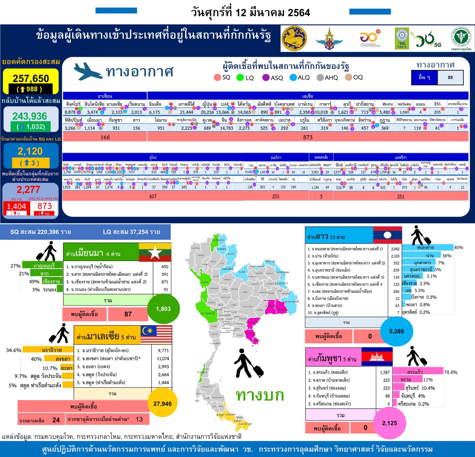 - ไทยมียอดผู้ติดเชื้อสะสมอยู่ที่อันดับ 116 และยอดผู้เสียชีวิตอยู่ที่อันดับ 154 ของโลก