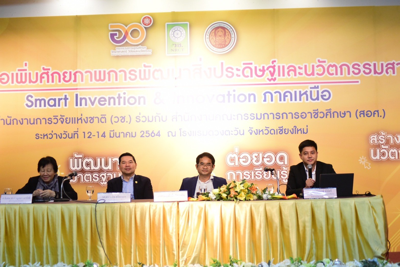 สำนักงานการวิจัยแห่งชาติ (วช.) กระทรวงการอุดมศึกษา วิทยาศาสตร์ วิจัยและนวัตกรรม (อว.) ร่วมกับ สำนักงานคณะกรรมการการอาชีวศึกษา (สอศ.) จัดโครงการการบ่มเพาะเพื่อเพิ่มศักยภาพการพัฒนาสิ่งประดิษฐ์และนวัตกรรมสายอาชีวศึกษา : Smart Invention & Invention (ภาคเหนือ) เพื่อเสริมสร้างและถ่ายทอดองค์ความรู้ทักษะและเทคนิคด้านการประดิษฐ์คิดค้นตลอดจนการเขียนข้อเสนอโครงการสิ่งประดิษฐ์ได้อย่างเป็นระบบพร้อมทั้งกระตุ้นและสร้างแรงจูงใจให้นักประดิษฐ์สายอาชีวศึกษาได้เข้าใจและเห็นประโยชน์ของการวิจัยและการประดิษฐ์คิดค้นเพื่อสร้างสรรค์ผลงานในเชิงนวัตกรรมที่สามารถพัฒนาต่อยอดและสร้างมูลค่าเพิ่มสู่การใช้ประโยชน์ในเชิงพาณิชย์ และสังคมต่อไป