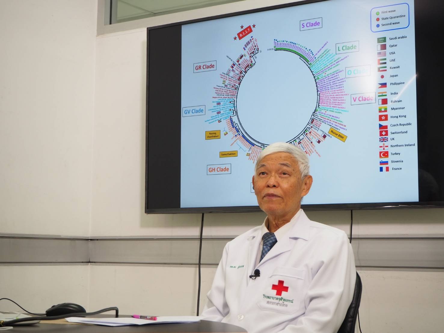 “โคโรนาไวรัสมีตั้งหลายสายพันธุ์ แต่เดิมที่ทำให้เกิดหวัดธรรมดาในเด็กก็เป็นไวรัสโคโรนาที่พบกันเป็นประจำอยู่แล้ว ต่อมาก็มีโคโรนาไวรัสสายพันธุ์ใหม่ที่เกิดจากการข้ามสายพันธุ์ เราเชื่อว่าข้ามจากสัตว์สู่คน จนมาถึงปี 2562 เกิดโรคอุบัติใหม่มาจนถึงทุกวันนี้คือโรคโควิด-19 ซึ่งถือเป็นภัยพิบัติที่ค่อนข้างจะรุนแรงในรอบ 100 ปี สิ่งที่เราติดตามและเรากลัวมากคือการเปลี่ยนแปลงพันธุกรรม และได้มีการเปลี่ยนแปลงกลายพันธุ์เกิดขึ้นในประเทศอังกฤษ เชื่อว่าเริ่มตั้งแต่ตุลาคม – พฤศจิกายน 2563 แล้ว แต่อังกฤษเริ่มสังเกตพบเมื่อธันวาคม 2563” ศ.ดร.ยง ภู่วรวรรณ กล่าว