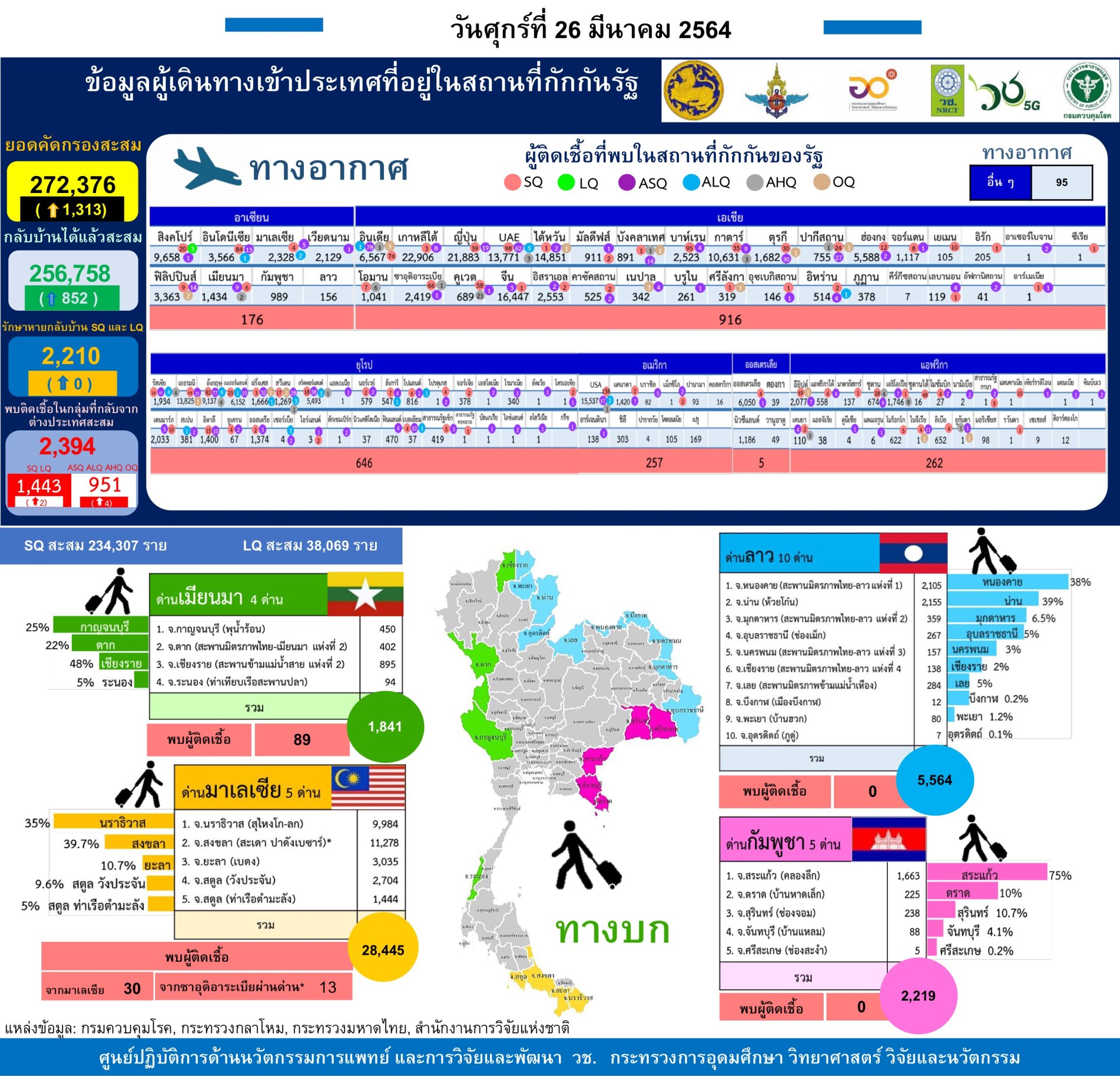 รักษาหายป่วยแล้ว 27,032 ราย(94.59%)(มีผู้ป่วยกลับบ้านเพิ่มขึ้น 86 ราย)รักษาอยู่ในโรงพยาบาล 1,453 ราย