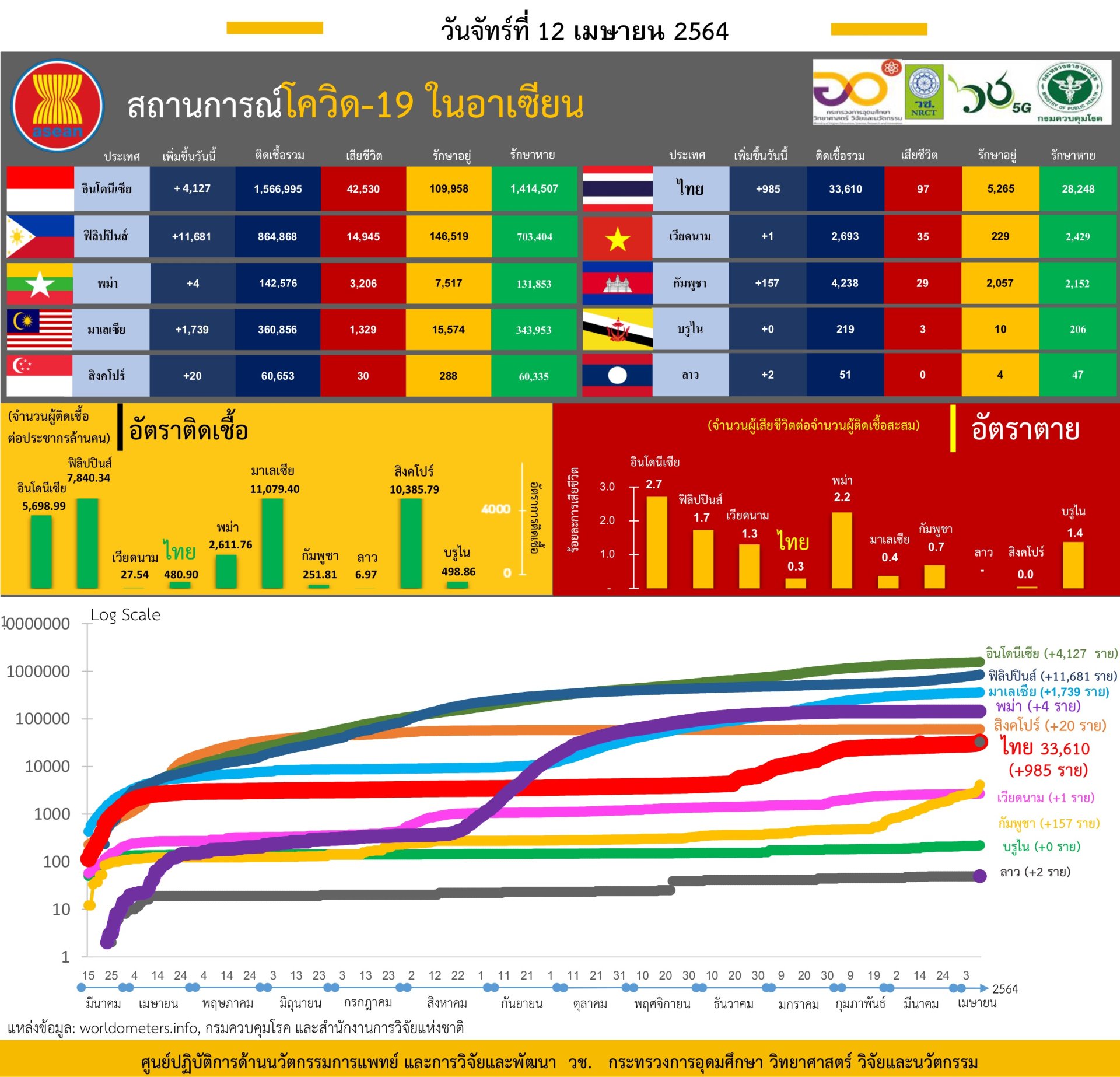 - ไทยมียอดผู้ติดเชื้อสะสมอยู่ที่อันดับ 113 และยอดผู้เสียชีวิตอยู่ที่อันดับ 151 ของโลก