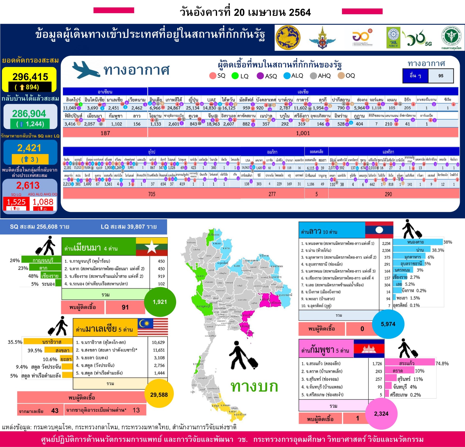 - ไทยมียอดผู้ติดเชื้อสะสมอยู่ที่อันดับ 107 และยอดผู้เสียชีวิตอยู่ที่อันดับ 151 ของโลก