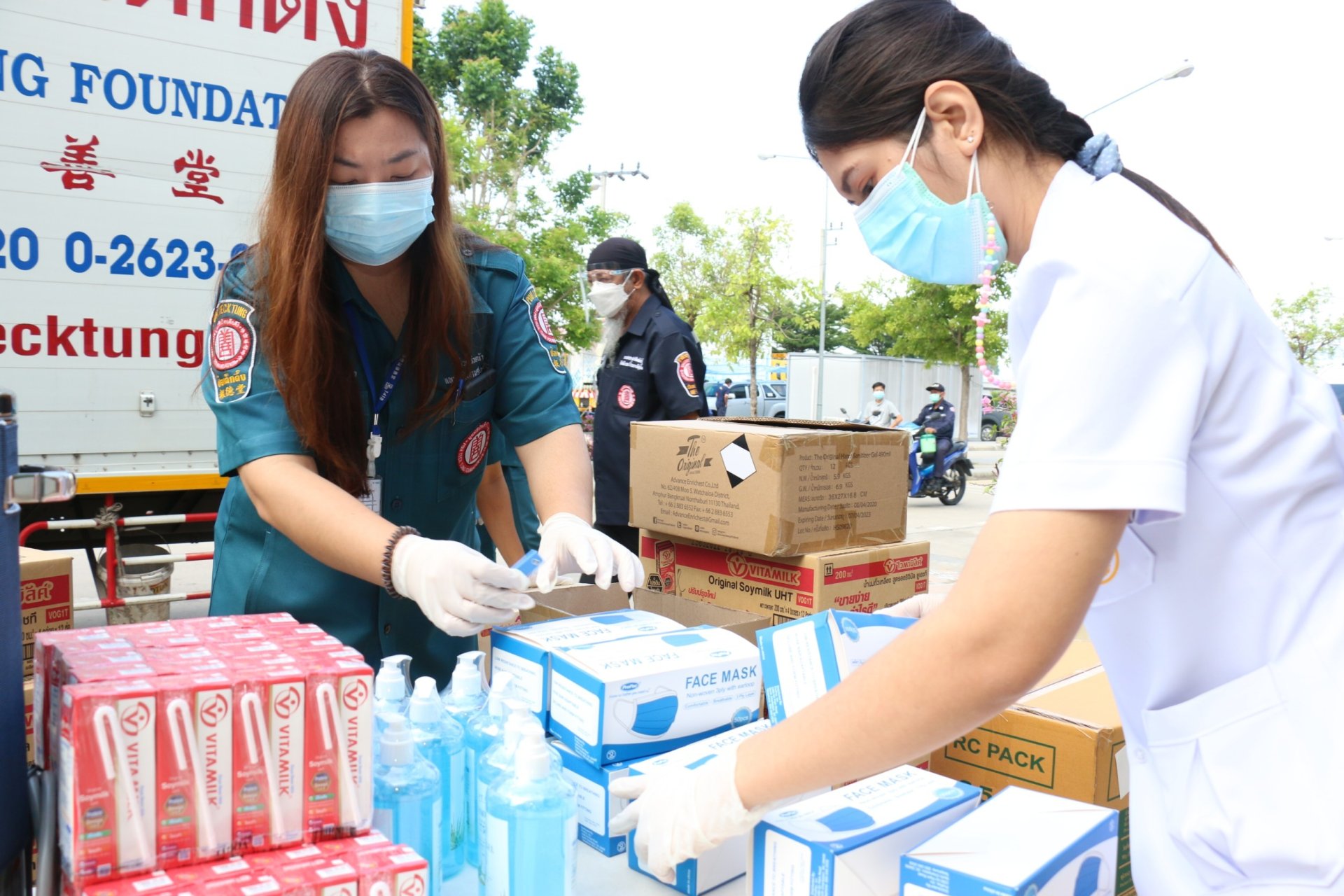 อธิอนันตศักดิ์ (เกรซ-พัชร์สิตา) นายปิยะวัฒน์ รัตนหรูวิจิตร (หรูหรา) และ นางสาวพัชรมัย บุญเลิศกุล (แพรว-พัชรมัย) ร่วมลงพื้นที่มอบสิ่งของและให้กำลังใจแก่บุคลากรทางการแพทย์