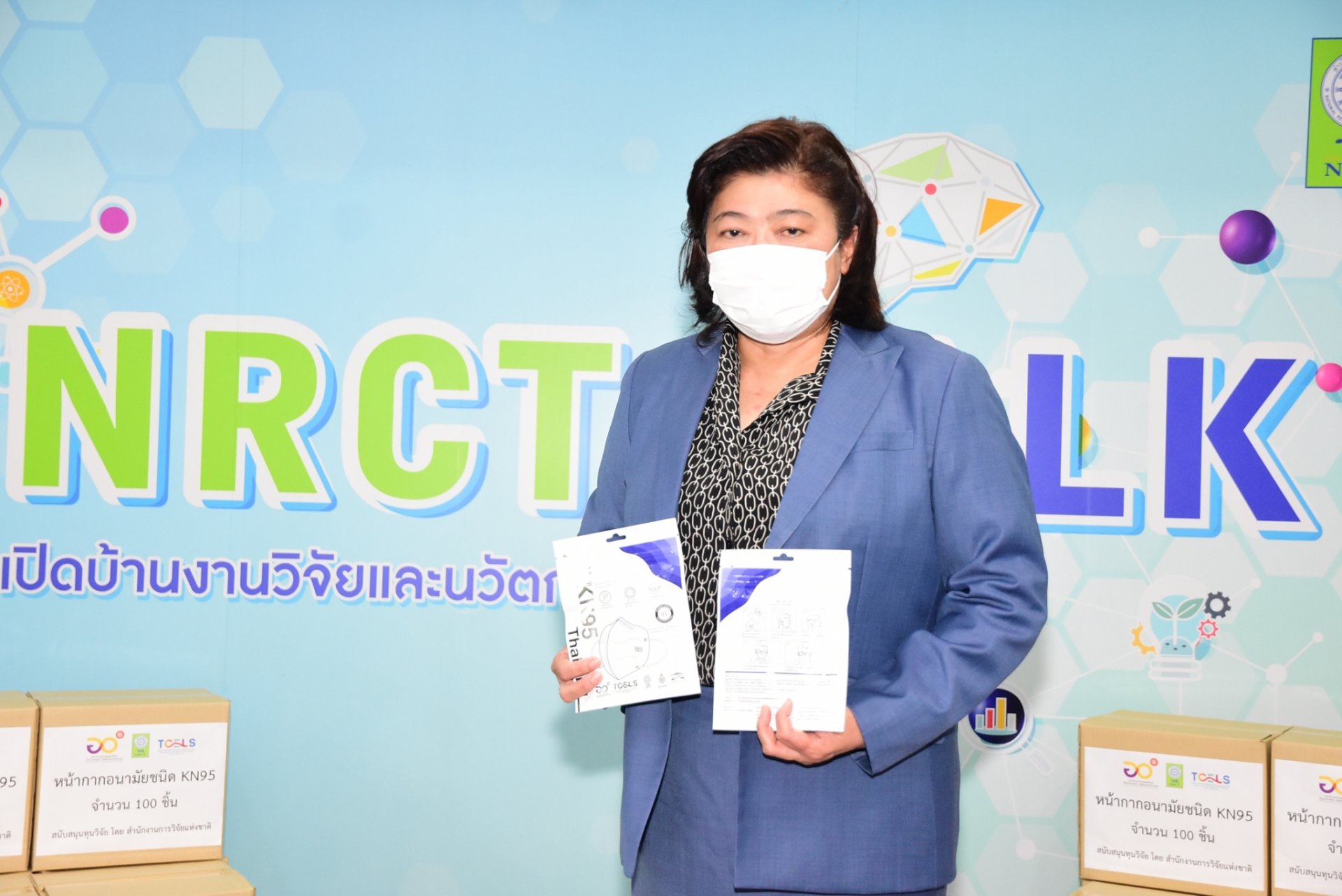 ดร.วิภารัตน์ ดีอ่อง ผู้อำนวยการสำนักงานการวิจัยแห่งชาติ เป็นประธานในพิธีส่งมอบนวัตกรรมหน้ากากอนามัยชนิด KN95 ในวันนี้ (7 พฤษภาคม 2564) พร้อมทั้งกล่าวถึงการสนับสนุนผลงานวิจัยและนวัตกรรมไปสู่การใช้ประโยชน์ โดยมี นางสาวนันทนา มีประเสริฐ ศิษย์เก่ามหาวิทยาลัยสงขลานครินทร์ วิทยาเขตปัตตานี รับมอบนวัตกรรมหน้ากากอนามัยชนิด KN95 ซึ่งจะนำไปใช้งานในโรงพยาบาลสนาม เพื่อรับมือสถานการณ์โรคติดเชื้อไวรัสโคโรนา 2019 หรือโรคโควิด-19