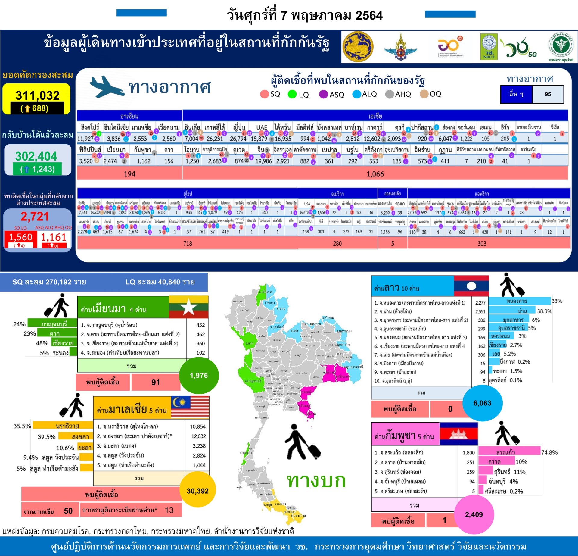 - ไทยมียอดผู้ติดเชื้อสะสมอยู่ที่อันดับ 98 และยอดผู้เสียชีวิตอยู่ที่อันดับ 121 ของโลก