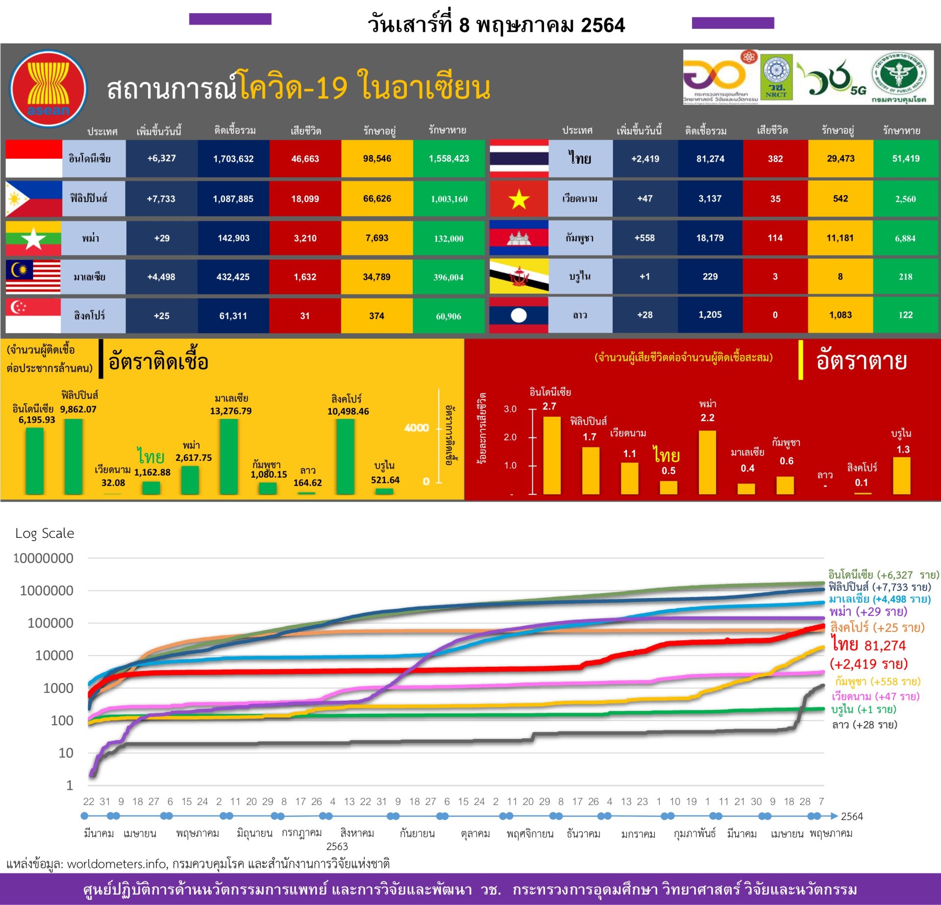 - ไทยมียอดผู้ติดเชื้อสะสมอยู่ที่อันดับ 99 และยอดผู้เสียชีวิตอยู่ที่อันดับ 121 ของโลก