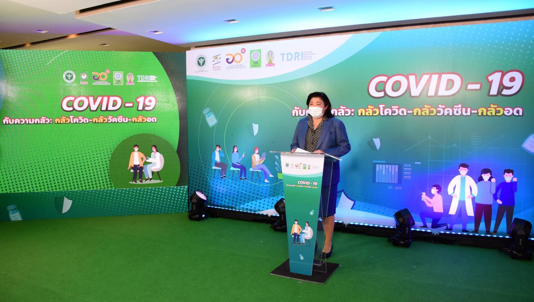 ดร.วิภารัตน์ ดีอ่อง ผู้อำนวยการสำนักงานการวิจัยแห่งชาติ กล่าวว่า การแก้ปัญหาและรับมือสถานการณ์การแพร่ระบาดโรคโควิด-19 ถือเป็นวาระแห่งชาติ วช.ได้สนับสนุนการวิจัยและพัฒนานวัตกรรมทางการแพทย์ ในฐานะหน่วยงานบริหารงานวิจัยของประเทศ (PMU) และศูนย์ปฏิบัติการด้านนวัตกรรมการแพทย์ และการวิจัยและพัฒนา เพื่อการป้องกันและแก้ไขปัญหาโรคโควิด-19 ต่อเนื่อง ซึ่งในขณะนี้ในประเทศเกิดการระบาดโรคโควิด-19 อีกครั้ง จึงต้องมีการควบคุมและป้องกัน ควบคู่กับการเร่งฟื้นฟูสังคม เศรษฐกิจให้กลับมาสู่ระดับเดิมโดยเร็ว รวมถึงการเตรียมนวัตกรรมทางการแพทย์อื่น ๆ เพื่อการรองรับการระบาดในระลอกใหม่ที่จะเกิดขึ้นในอนาคต นอกจากนี้หลายประเทศทั่วโลกเร่งศึกษาวิจัยและพัฒนาวัคซีนเพื่อป้องกันโรคโควิด-19 โดยทุกประเทศได้มีนโยบายในการฉีดวัคซีนให้ประชาชนภายในประเทศให้เร็วที่สุด ด้วยความปลอดภัยตามมาตรฐานการแพทย์และสาธารณสุข เพื่อให้ร่างกายสร้างแอนติบอดีต่อเชื้อโควิด-19 การฉีดวัคซีนของทั่วโลกมุ่งหวังว่าการติดเชื้อจะกลับมารุนแรง และสามารถป้องกันการแพร่ระบาดของโลกได้ เพื่อให้บรรลุผล วช. จึงเน้นงานวิจัยและนวัตกรรมที่สามารถช่วยแก้ปัญหาทางสังคมและเศรษฐกิจในระหว่างการเกิดวิกฤตโรคโควิด-19 เพื่อรองรับผลกระทบที่เกิดขึ้น นอกจากประเด็นการศึกษาอุบัติการณ์ และการดำเนินโรค หลังการได้รับวัคซีนป้องกันโควิด-19 ในบุคลากรทางการแพทย์ ประชาชน และผู้มีโรคประจำตัว ยังมีการติดตามความปลอดภัย ผลของภูมิต้านทานที่จะเกิดขึ้นจากการได้รับวัคซีน และยังมีการวิจัยและพัฒนานวัตกรรมทางการแพทย์ที่มีศักยภาพ มีมาตรฐานความปลอดภัย สามารถนำไปใช้ในสถานการณ์จริงได้ การวิจัยดังกล่าวจะช่วยให้ประเทศสามารถฟื้นตัวได้เร็ว เพิ่มภูมิคุ้มกันทั้งทางสังคม เศรษฐกิจ และสุขภาพให้กับประชาชนในประเทศ