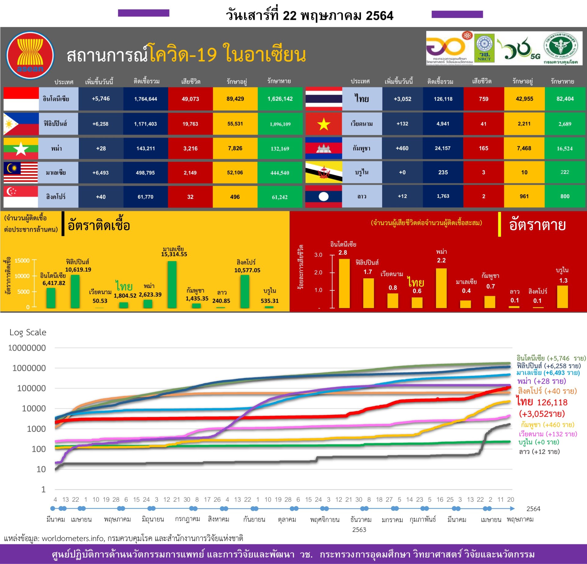 - ไทยมียอดผู้ติดเชื้อสะสมอยู่ที่อันดับ 90 และยอดผู้เสียชีวิตอยู่ที่อันดับ 113 ของโลก
