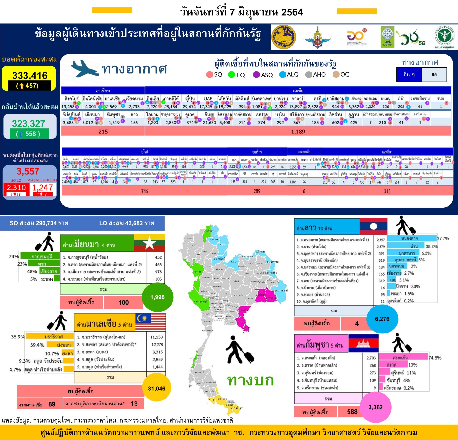 - มาเลเซีย ยอดผู้ติดเชื้อสะสมอยู่ที่ 616,815 ราย โดยยอดผู้ติดเชื้อรายใหม่