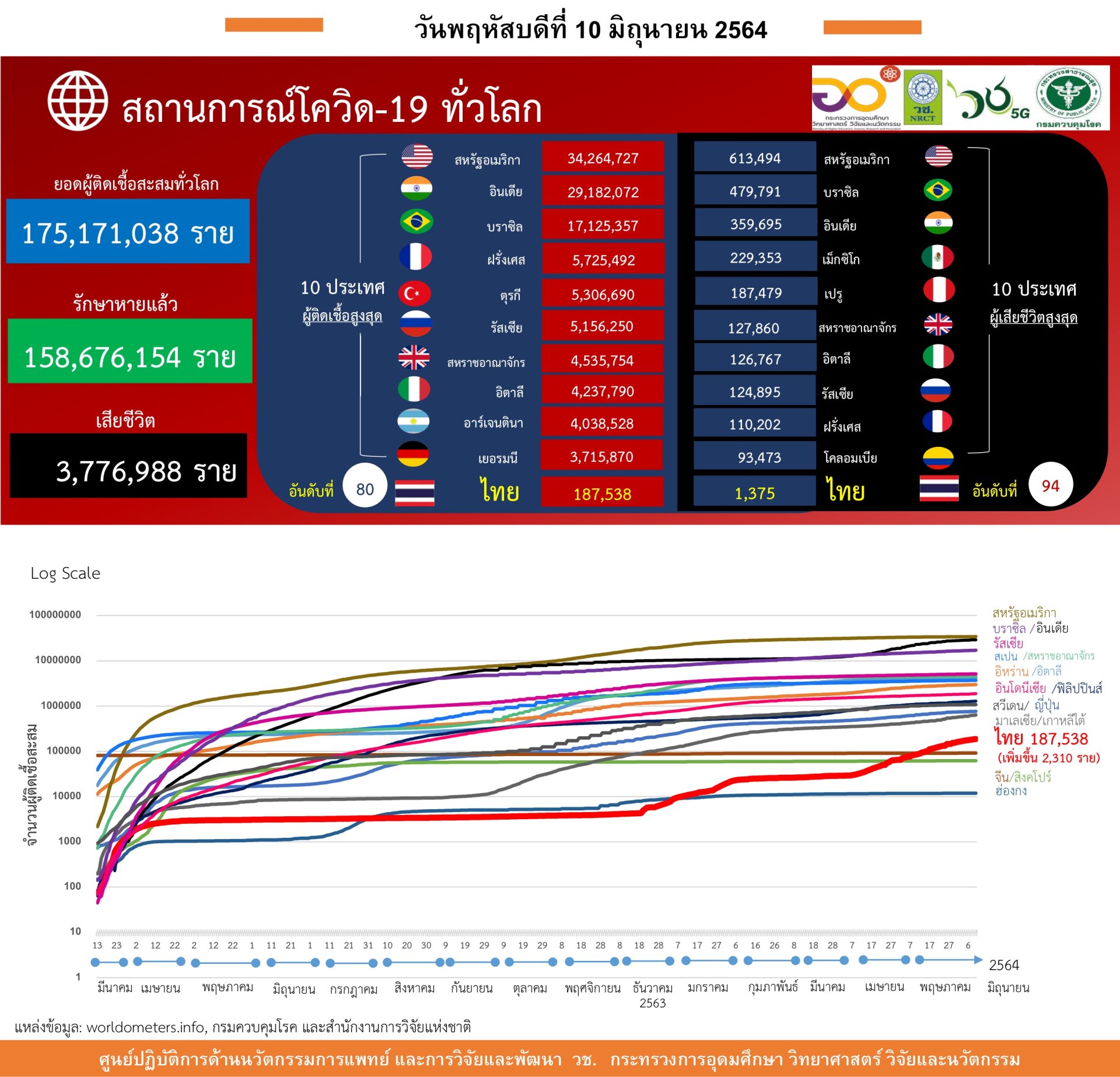 - ยอดผู้ติดเชื้อสะสมทั่วโลก 175 ล้านราย มีจำนวนผู้เสียชีวิตสะสมกว่า 3.7 ล้านราย