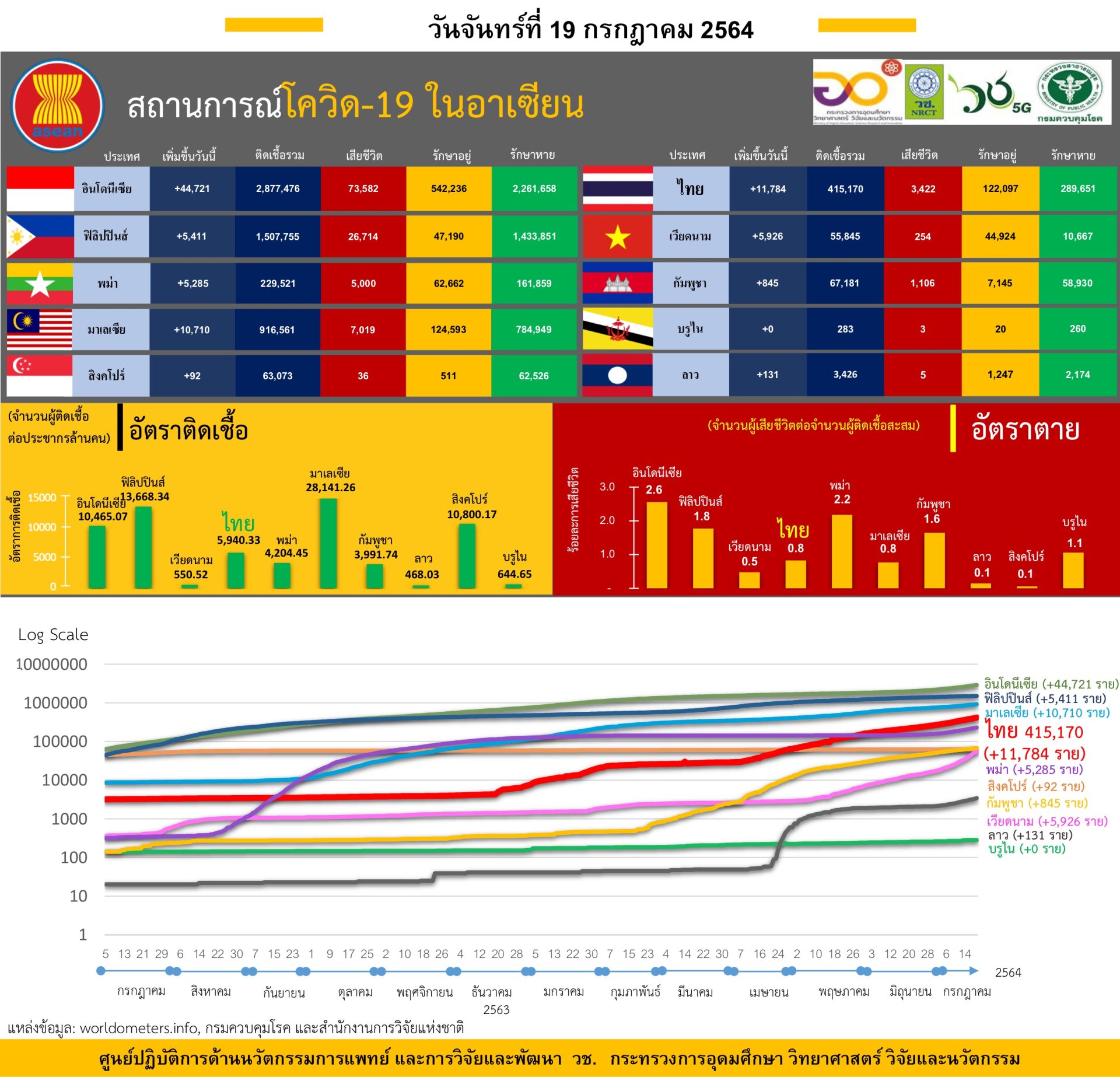 - ไทยมียอดผู้ติดเชื้อสะสมอยู่ที่อันดับ 54 และยอดผู้เสียชีวิตอยู่ที่อันดับ 78 ของโลก