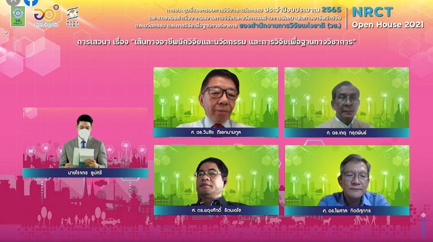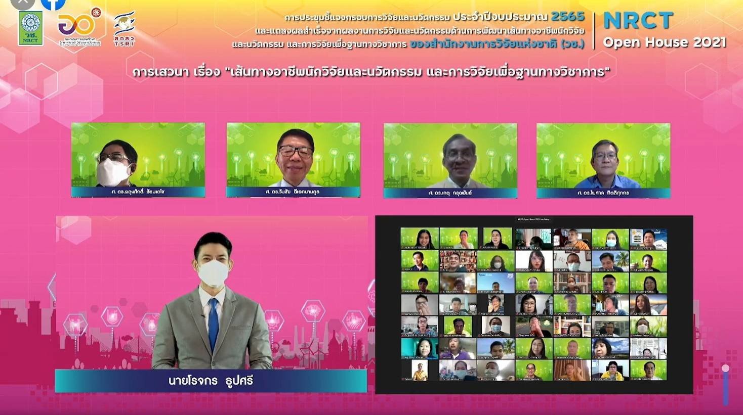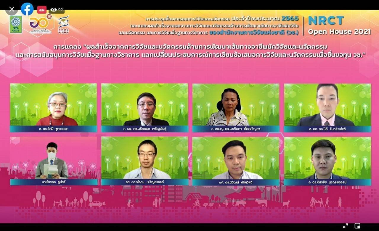วันที่ 19 กรกฏาคม 2564 สำนักงานการวิจัยแห่งชาติ (วช.) กระทรวงการอุดมศึกษา วิทยาศาสตร์ วิจัยและนวัตกรรม จัดการประชุมชี้แจงกรอบการวิจัยและนวัตกรรม ประจำปีงบประมาณ 2565 และแถลงผลสำเร็จจากการวิจัยและนวัตกรรม NRCT Open House 2021 “วิจัยและนวัตกรรมในประเด็นท้าทายของประเทศ” ระหว่างวันที่ 18 - 25 กรกฎาคม 2564 ในรูปแบบออนไลน์ผ่านวีดีทัศน์ทางไกล (VDO Conference) ด้วยระบบ Zoom และการถ่ายทอดสด (Live Steaming) ผ่าน Facebook NRCT เป็นวันที่ 2
