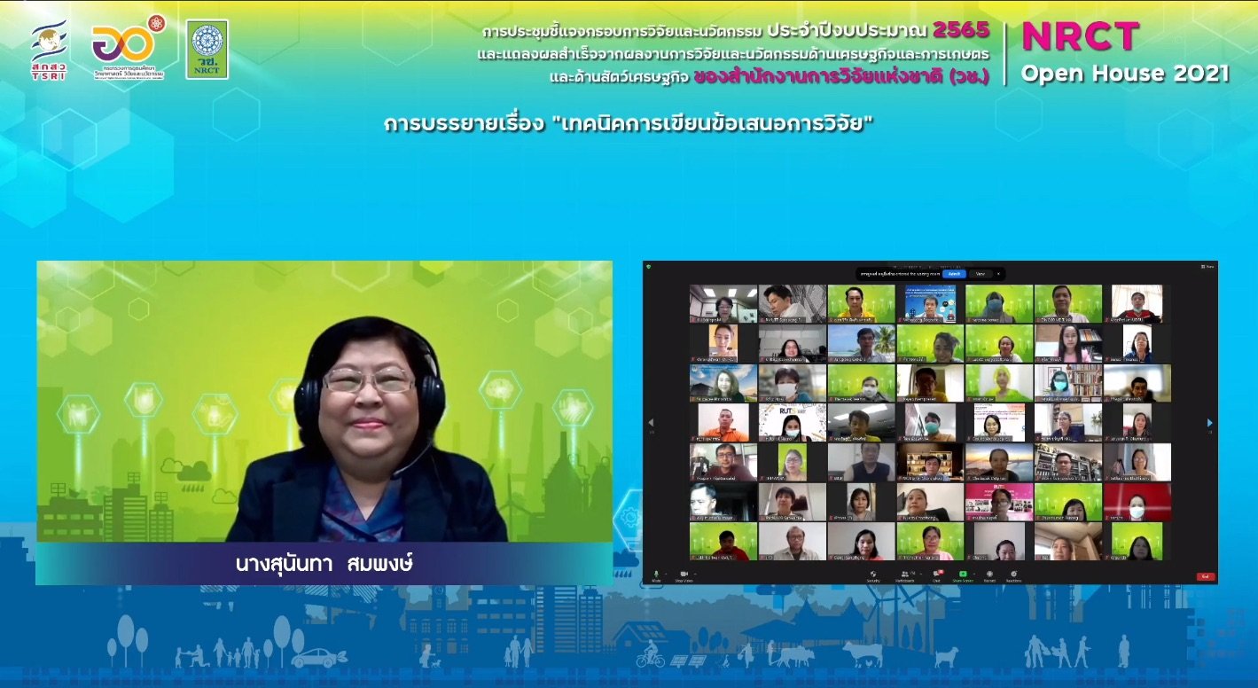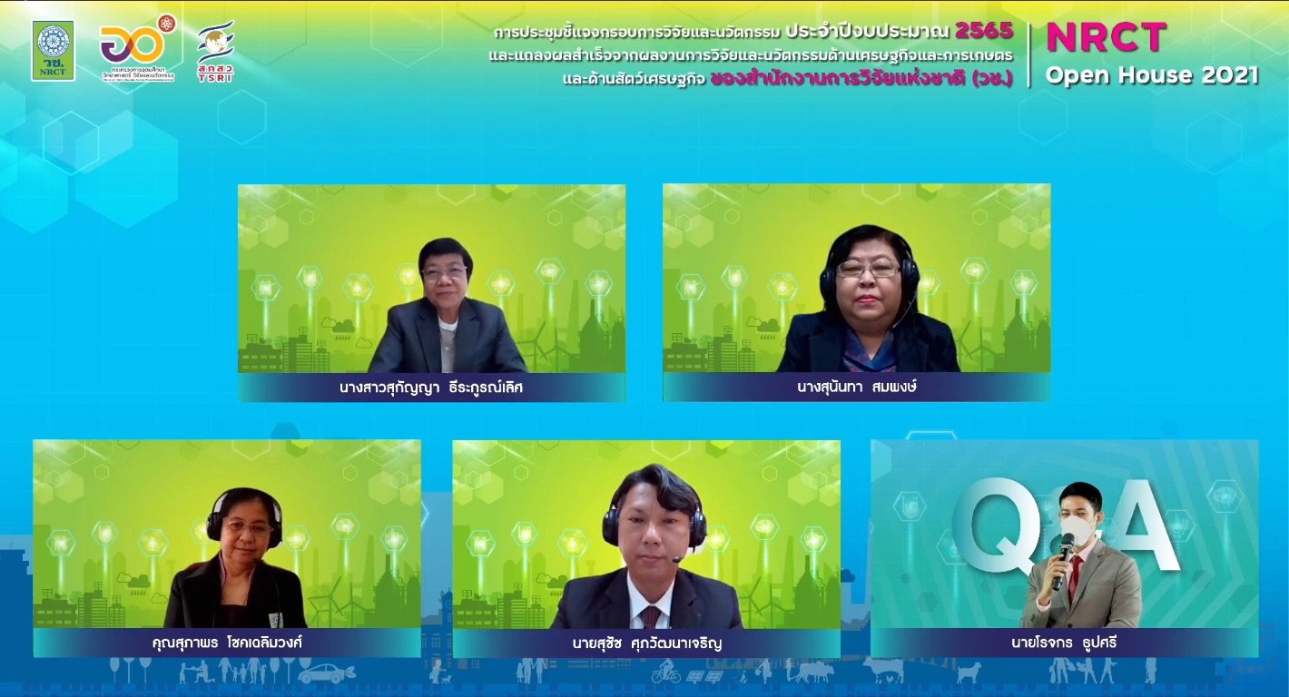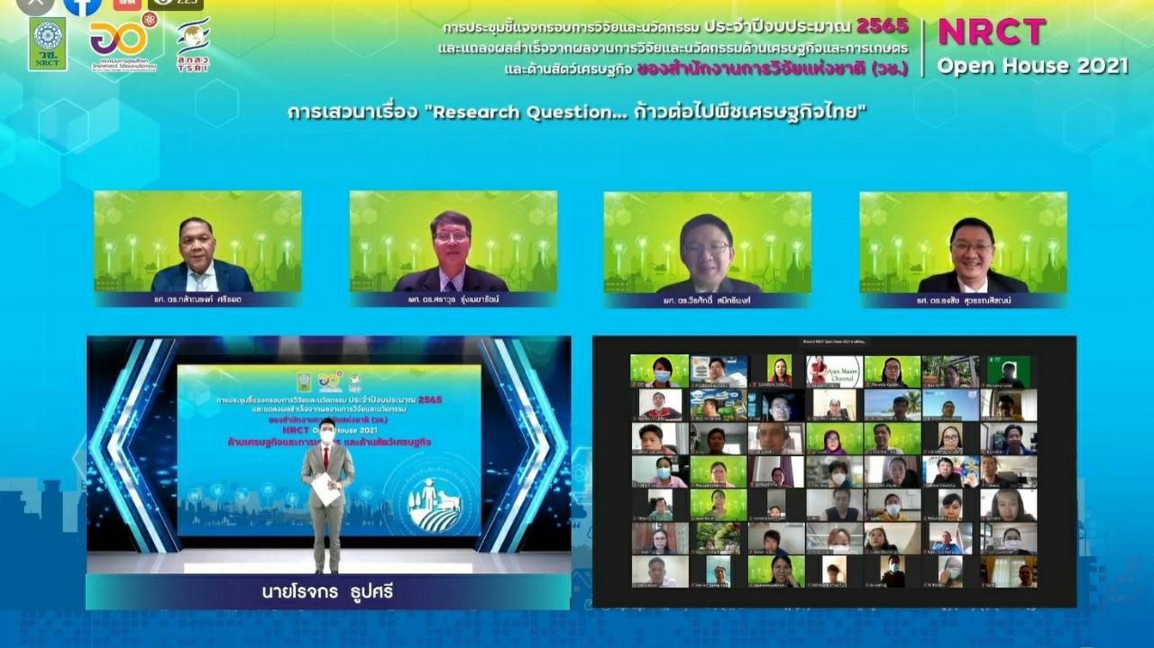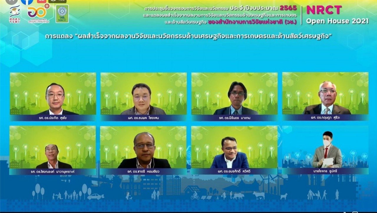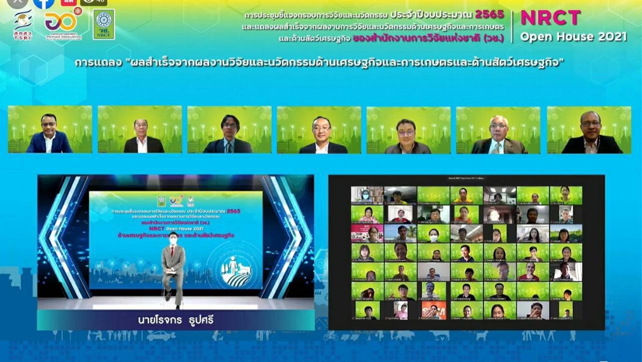 วันที่ 20 กรกฎาคม 2564 สำนักงานการวิจัยแห่งชาติ (วช.) กระทรวงการอุดมศึกษา วิทยาศาสตร์ วิจัยและนวัตกรรม จัดการประชุมชี้แจงกรอบการวิจัยและนวัตกรรม ประจำปีงบประมาณ 2565 และ แถลงผลสำเร็จจากการวิจัยและนวัตกรรม NRCT Open House 2021 “วิจัยและนวัตกรรมในประเด็นท้าทายของประเทศ” ระหว่างวันที่ 18 - 25 กรกฎาคม 2564 ในรูปแบบออนไลน์ผ่านวีดีทัศน์ทางไกล (VDO Conference) ด้วยระบบ Zoom และการถ่ายทอดสด (Live Steaming) ผ่าน Facebook NRCT เป็นวันที่ 3 เพื่อชี้แจงกรอบการวิจัยและนวัตกรรม ประจำปีงบประมาณ 2565 ด้านเศรษฐกิจและการเกษตร และด้าน สัตว์เศรษฐกิจ ของ วช. และแนวทางการเขียนและพิจารณาข้อเสนอการวิจัยและนวัตกรรม รวมทั้งแถลงผลสำเร็จจากการวิจัยและนวัตกรรมและเป็นเวทีแลกเปลี่ยนประสบการณ์การเขียนข้อเสนอการวิจัยและนวัตกรรมและการยื่นขอทุน วช.