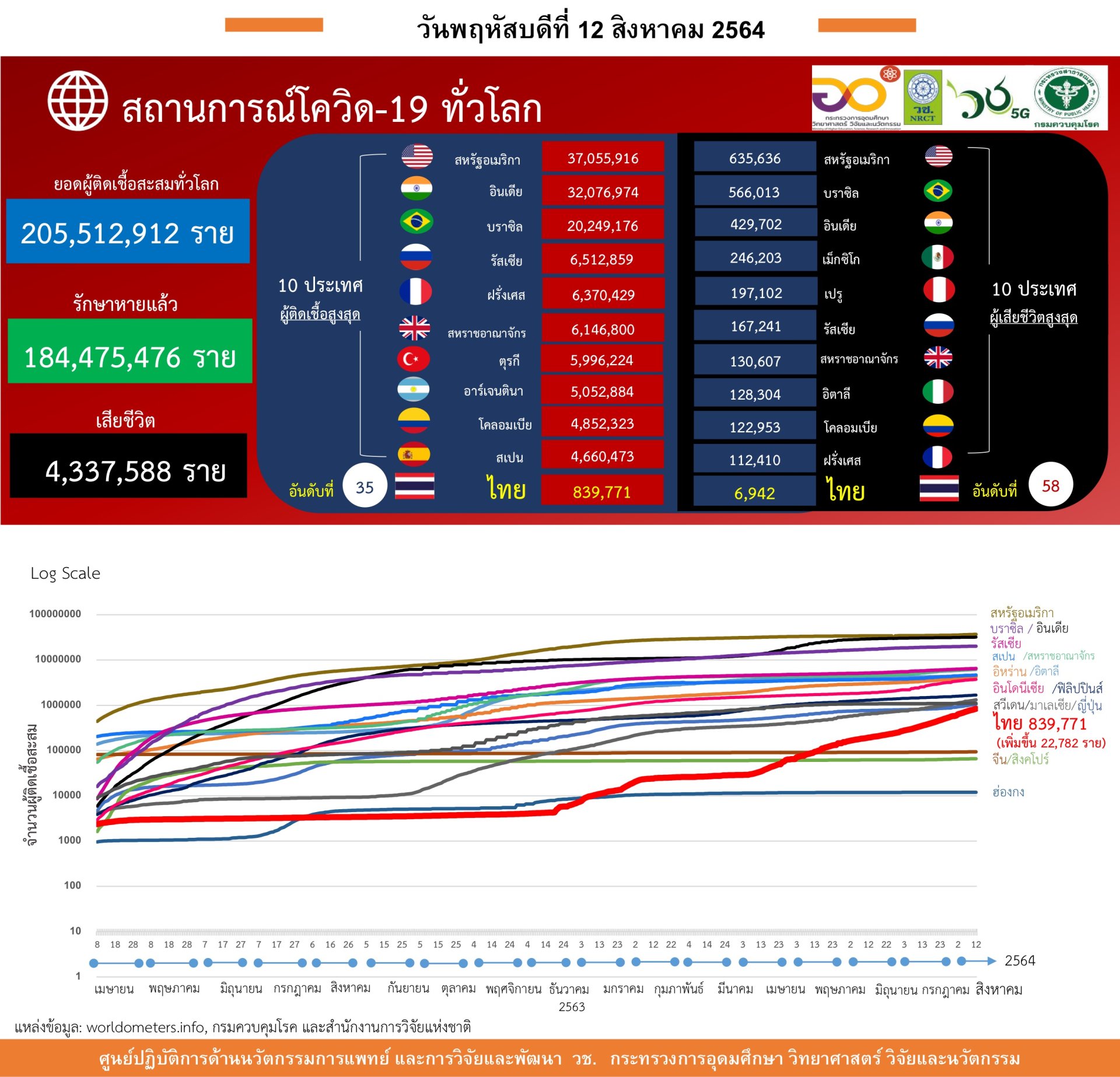 - ยอดผู้ติดเชื้อสะสมทั่วโลก 205.5 ล้านราย มีจำนวนผู้เสียชีวิตสะสมกว่า 4.3 ล้านราย