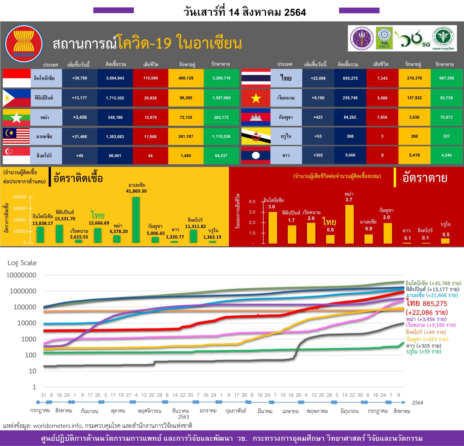 - เวียดนาม ผู้ติดเชื้อรายใหม่อยู่ที่ 9,180 ราย และมียอดผู้เสียชีวิตสะสม 5,088 ราย