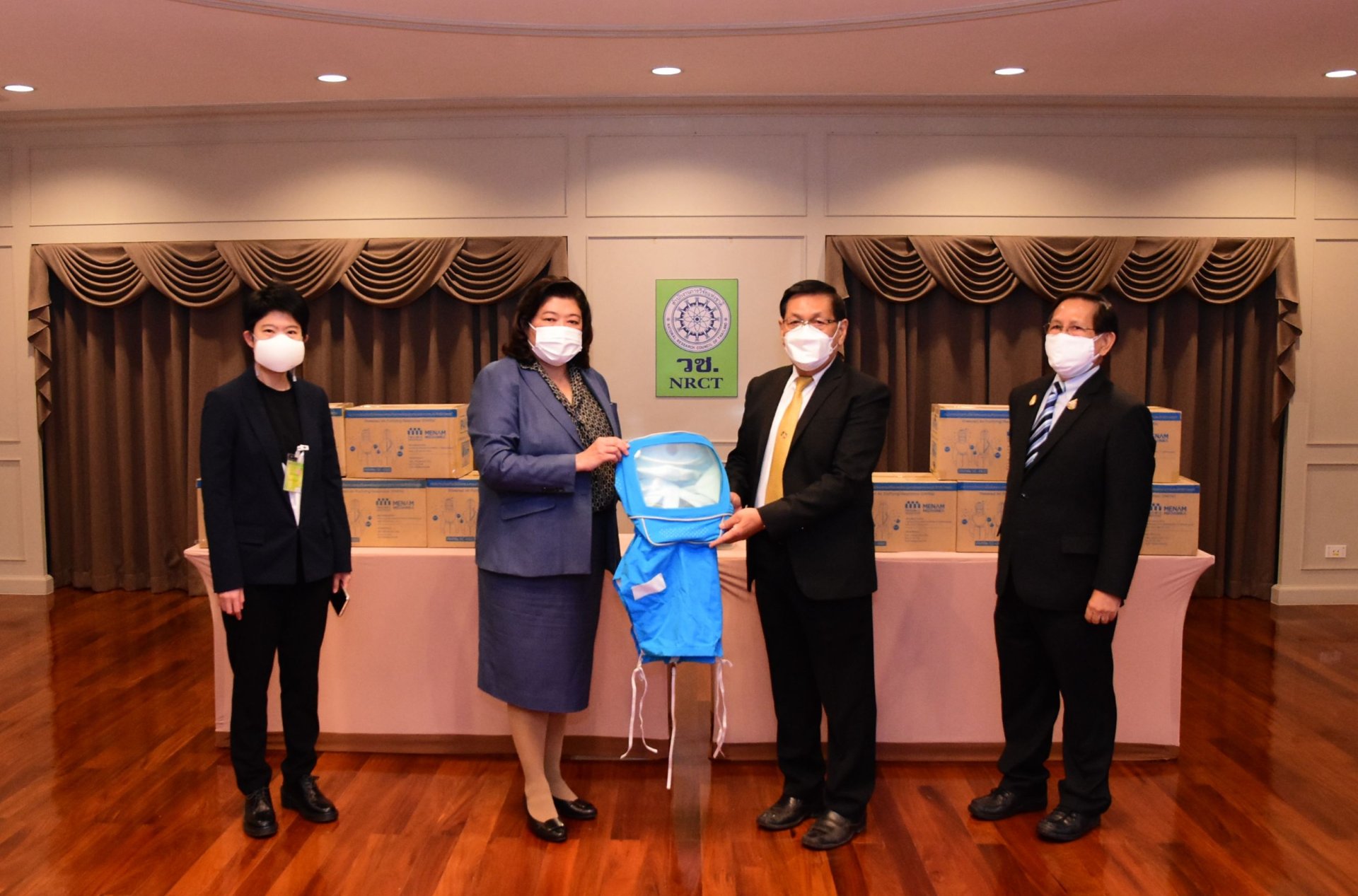 (20 สิงหาคม 2564) ดร.วิภารัตน์ ดีอ่อง ผู้อำนวยการสำนักงานการวิจัยแห่งชาติ ส่งมอบนวัตกรรมชุดหน้ากากป้องกันเชื้อโรคแบบคลุมศีรษะ พร้อมชุดกรองอากาศประสิทธิภาพสูง (PAPR) จำนวน 22 ชุด แก่ นายธานี สุโชดายน สมาชิกวุฒิสภา เพื่อนำไปใช้งานกับสถานพยาบาล และโรงพยาบาลสนามอื่น ๆ ใน 11 อำเภอ ของจังหวัดกำแพงเพชร ที่กำกับและดูแลรักษาผู้ป่วยโรคโควิด-19 จำนวนอำเภอละ 2 ชุด ประกอบด้วยโรงพยาบาล 12 แห่ง ได้แก่ โรงพยาบาลกำแพงเพชร โรงพยาบาลทุ่งโพธิ์ทะเล โรงพยาบาลไทรงาม โรงพยาบาลคลองลาน โรงพยาบาลขาณุวรลักษบุรี โรงพยาบาลคลองขลุง โรงพยาบาลพรานกระต่าย โรงพยาบาลลานกระบือ โรงพยาบาลทรายทองวัฒนา โรงพยาบาลปางศิลาทอง โรงพยาบาลบึงสามัคคี และโรงพยาบาลโกสัมพีนคร