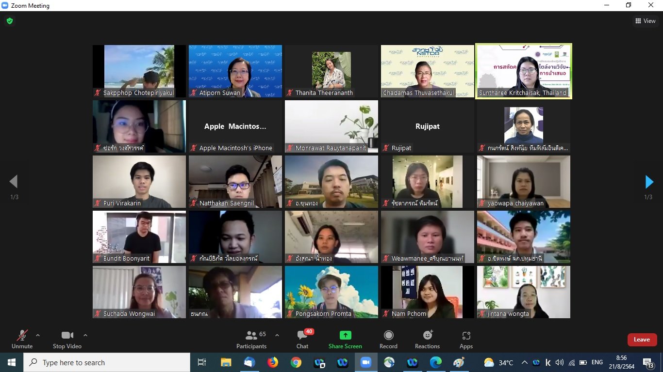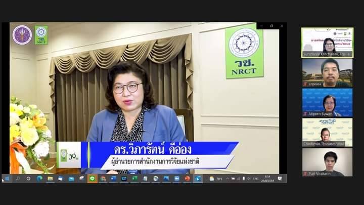วันที่ 21 สิงหาคม 2564 ดร.วิภารัตน์ ดีอ่อง ผู้อำนวยการ สำนักงานการวิจัยแห่งชาติ เป็นประธานในพิธีเปิดการฝึกอบรมเชิงปฏิบัติการออนไลน์ เรื่อง “การสกัดคอนเทนต์สไตล์งานวิจัยเพื่อใช้ในการนำเสนอ” จัดโดย สำนักงานการวิจัยแห่งชาติ (วช.) ร่วมกับ สำนักงานพัฒนาวิทยาศาสตร์และเทคโนโลยีแห่งชาติ (สวทช.) ภายใต้กระทรวงการอุดมศึกษา วิทยาศาสตร์ วิจัยและนวัตกรรม (อว.) ในรูปแบบออนไลน์