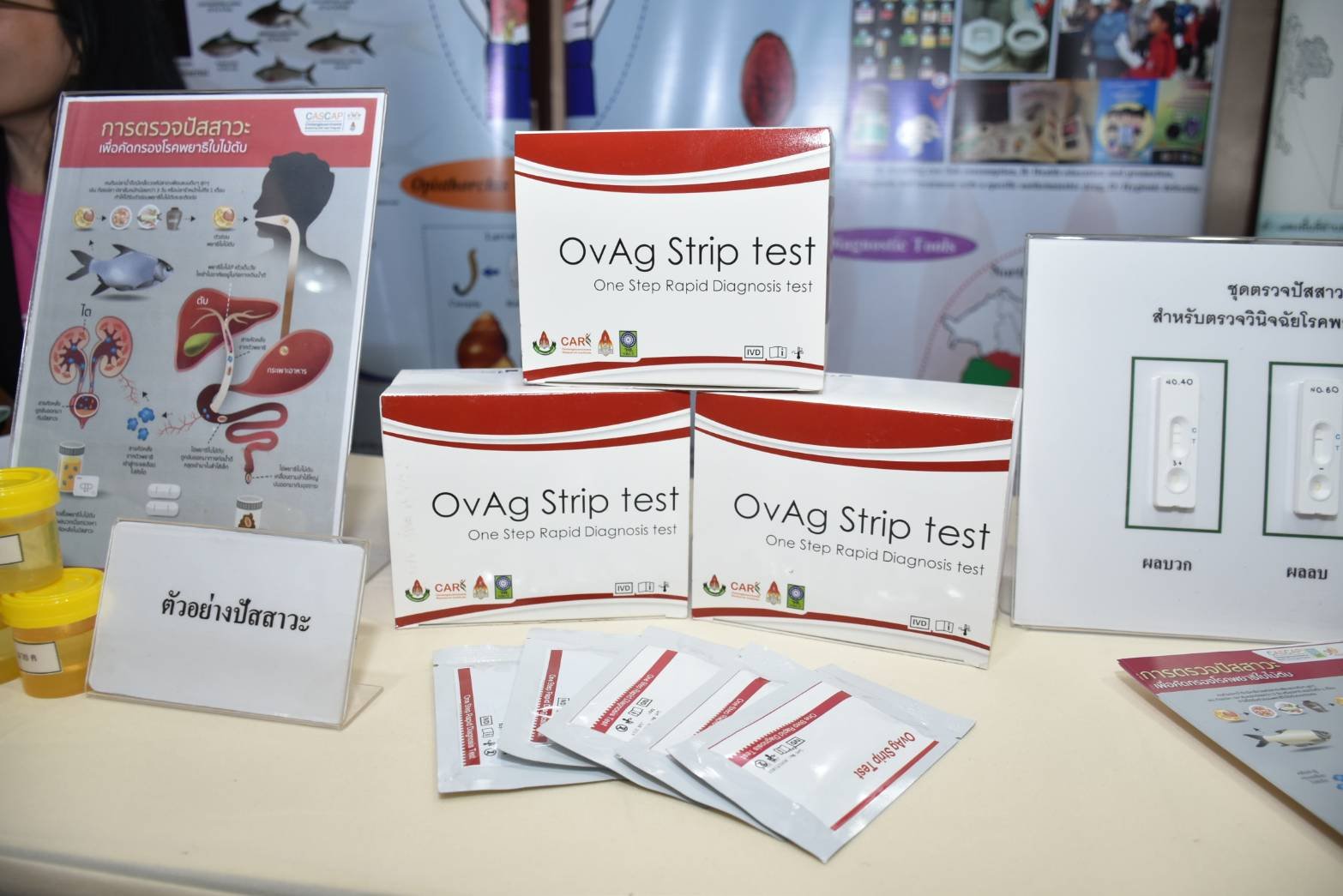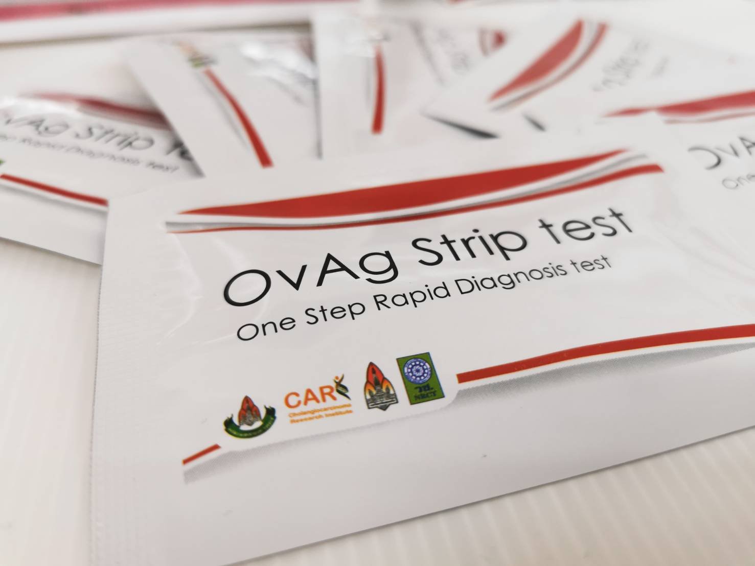 สถาบันวิจัยมะเร็งท่อน้ำดี มหาวิทยาลัยขอนแก่น ได้คิดค้นและพัฒนาการนวัตกรรมการตรวจวินิจฉัยพยาธิใบไม้ตับด้วยวิธีใหม่ ได้แก่ “ชุดตรวจพยาธิใบไม้ตับสำเร็จรูปชนิดเร็ว (OV-RDT)” โดยใช้ตัวตรวจจับจำเพาะหรือโมโนโคลนอลแอนติบอดี (monoclonal antibody) ที่มีความจำเพาะต่อพยาธิใบไม้ตับและเป็นสารตรวจจับสิ่งคัดหลั่งหรือแอนติเจนของพยาธิใบไม้ตับในปัสสาวะ ชุดตรวจปัสสาวะสำเร็จรูปดังกล่าวเป็นการพัฒนาต่อยอดจากการตรวจวิธี ELISA ให้มีรูปแบบที่ง่ายขึ้น ใช้เวลาสั้นลง และใช้ได้ในภาคสนาม โดยการตรวจใช้เวลาเพียง 10 นาที ในปัจจุบัน ได้ผลิตชุดตรวจสำเร็จรูปชนิดเร็ว (OV-Rapid diagnostic test, OV-RDT) เพื่อให้เกิดประโยชน์อย่างสูงสุดแก่ประชาชนและส่งเสริมการแก้ปัญหาโรคพยาธิใบไม้ตับในพื้นที่อย่างต่อเนื่อง